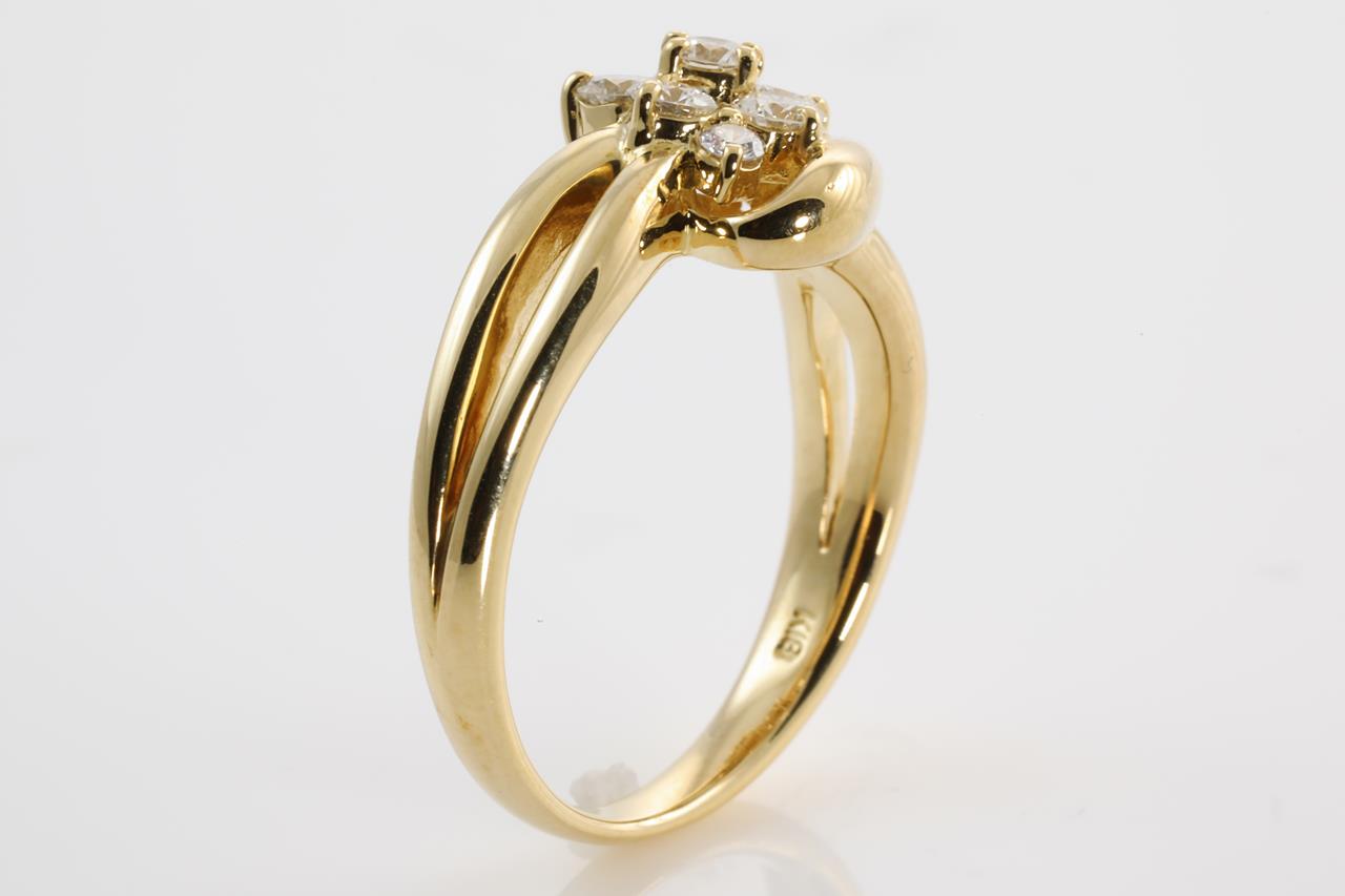 Diamond dress ring with round Diamonds totalling 0.50cts (Estimated grading: G-H SI). 18ct yellow gold. Ring size K1/2. Weight: 5.6g (Pre-owned)