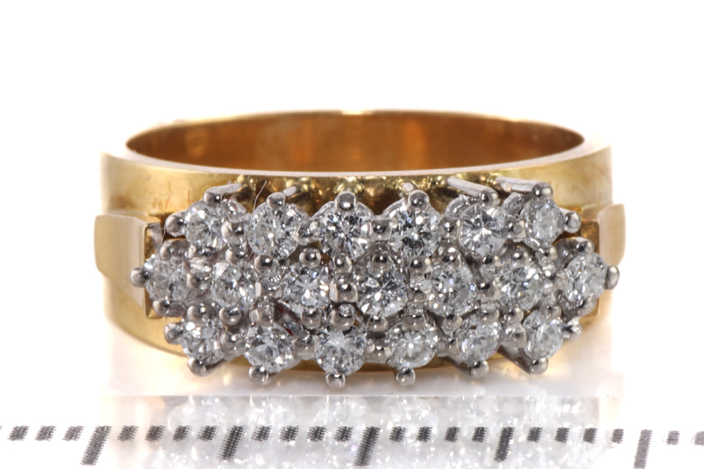 Diamond dress ring with round Diamonds of 0.50ct (Estimated grading: G-H SI2). 18ct yellow gold. Ring size N 1/2. Weight: 8.7g. With Valuation Certificate #032500320113.
