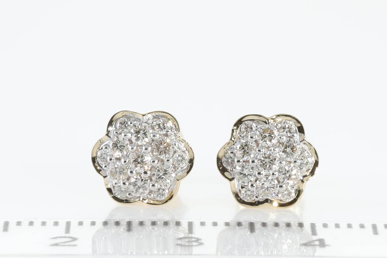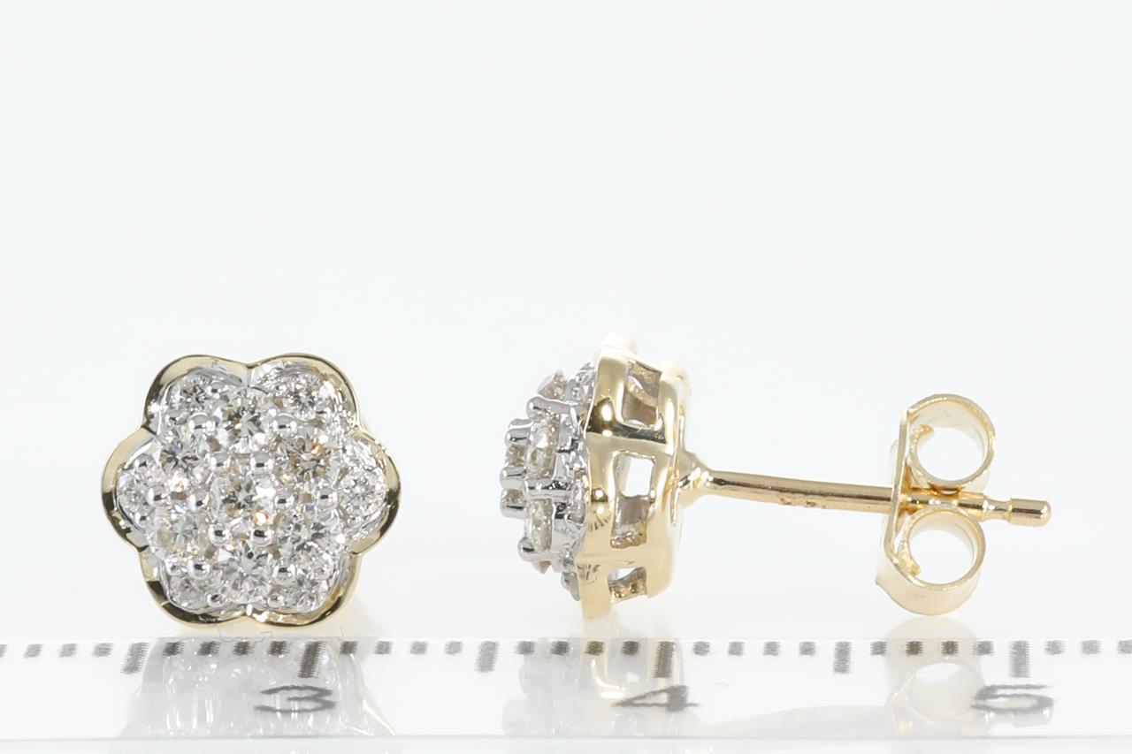 Diamond earrings with round Diamonds totalling 0.50cts (Estimated grading: H SI). 14ct yellow gold. Weight: 2.2g (New).