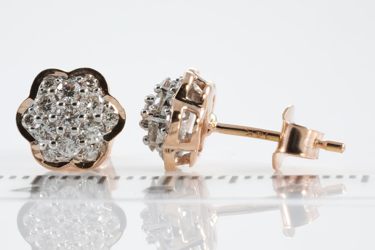 Diamond earrings with round Diamonds totalling 0.50cts (Estimated grading: H SI). 14ct rose gold. Weight: 2.2g (New).