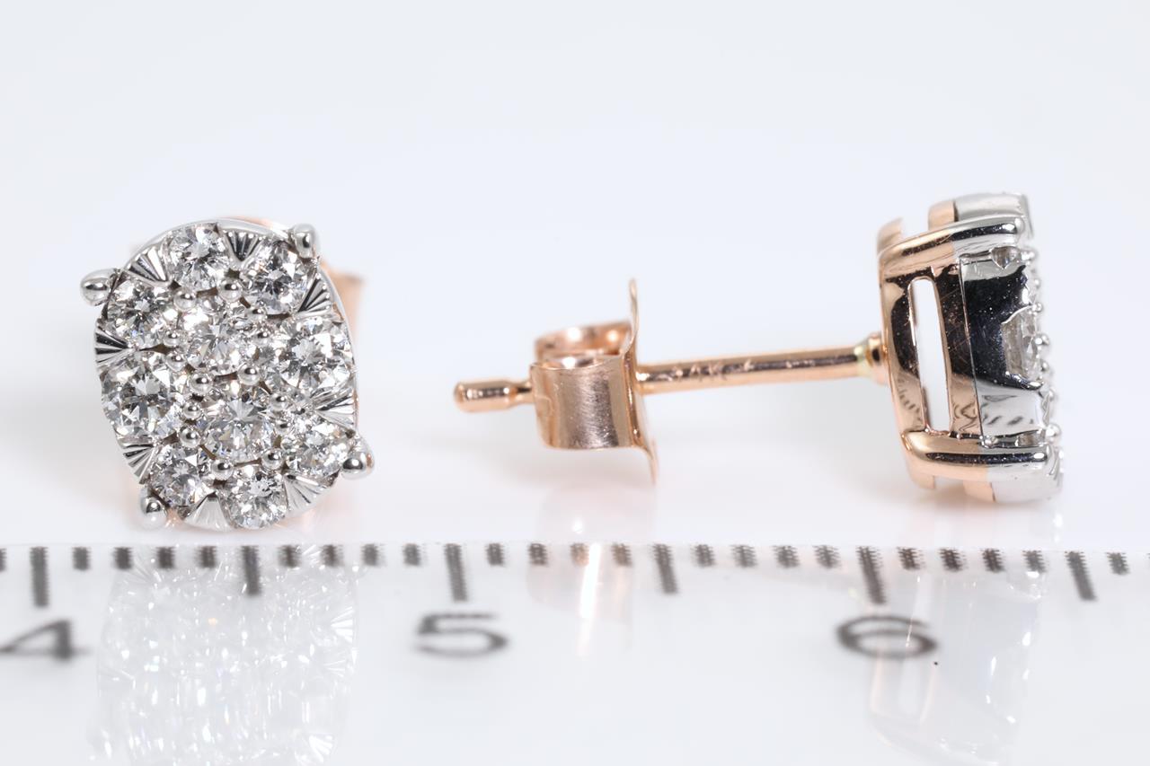 Diamond stud earrings with 20 round Diamonds totalling 0.50cts (Estimated grading: H SI). 14ct rose gold and white gold. Weight: 2.0g (New)