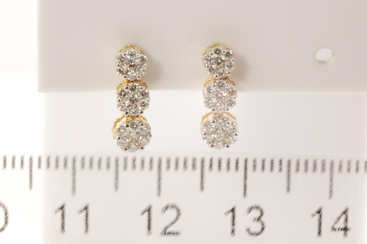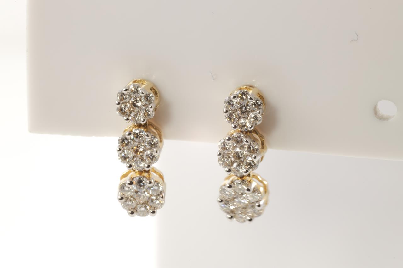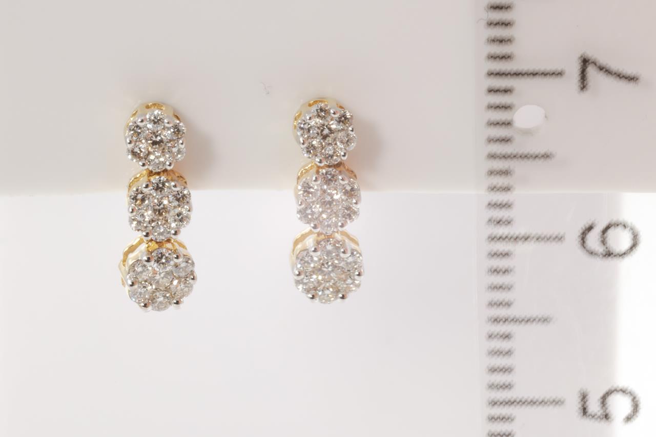 Diamond drop earrings with 42 round Diamonds totallling 0.50cts (Estimated grading: H SI). 14ct yellow gold and white gold. Weight: 1.7g (New)