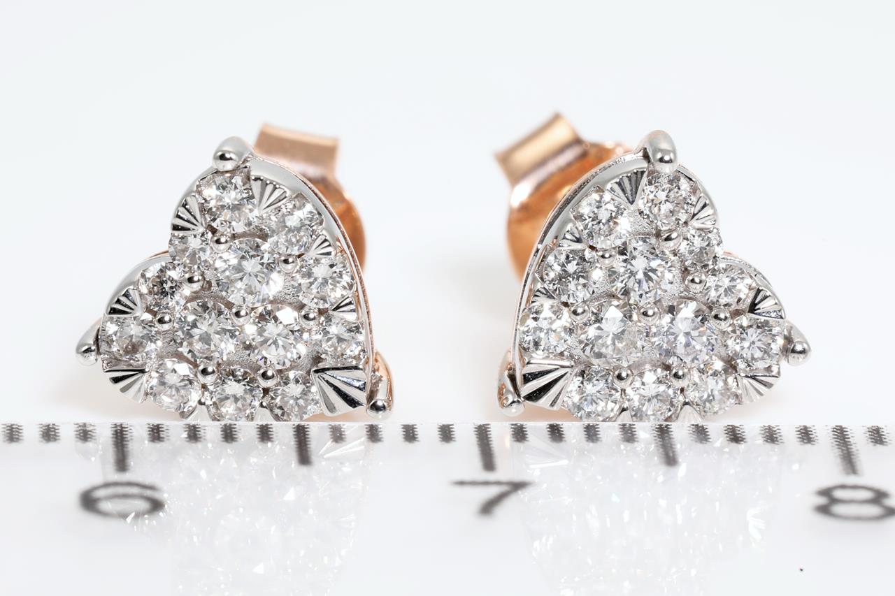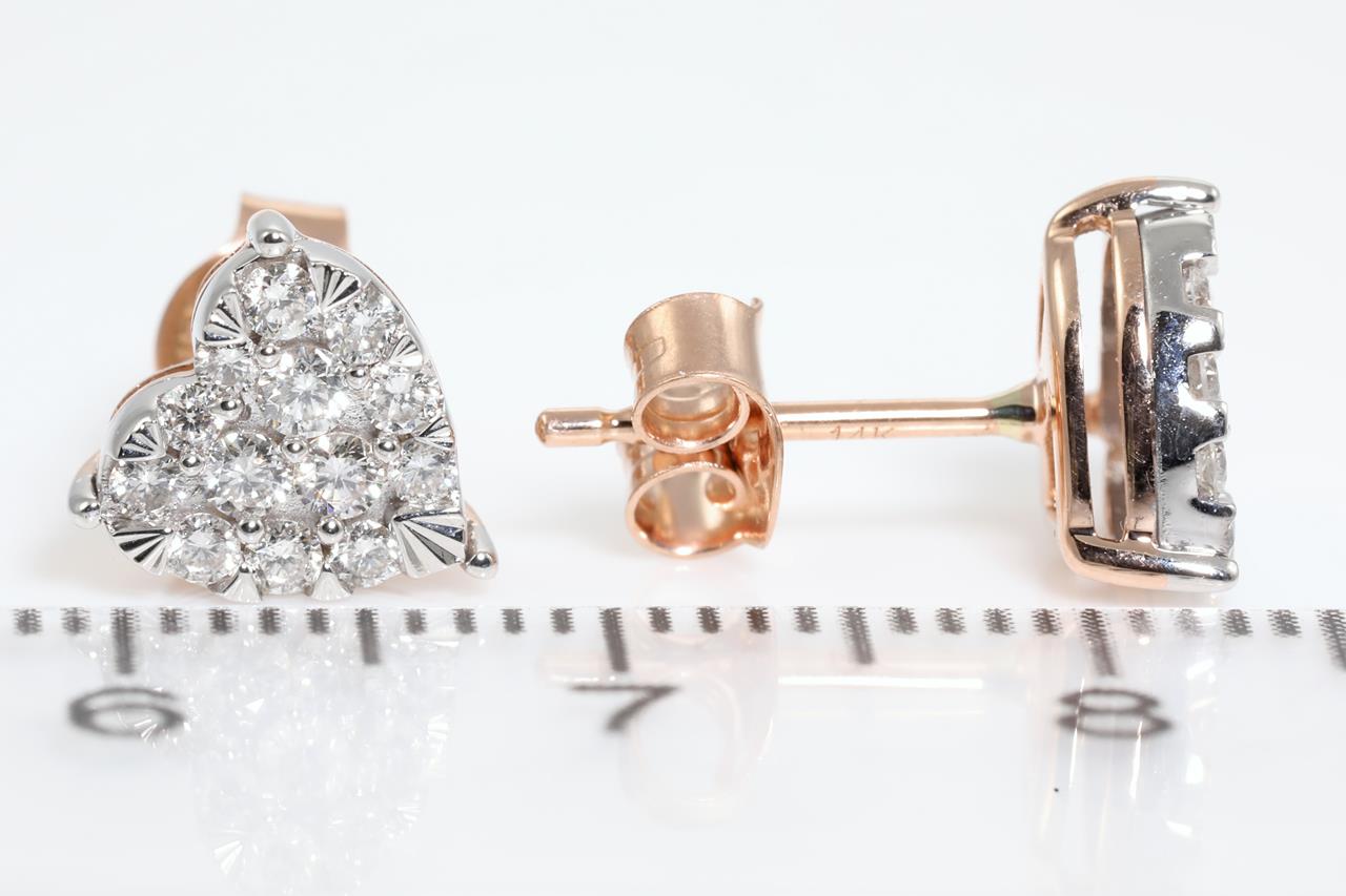 Diamond heart stud earrings with 26 round Diamonds totallling 0.50cts (Estimated grading: H SI). 14ct rose and white gold. Weight: 2.0g (New)