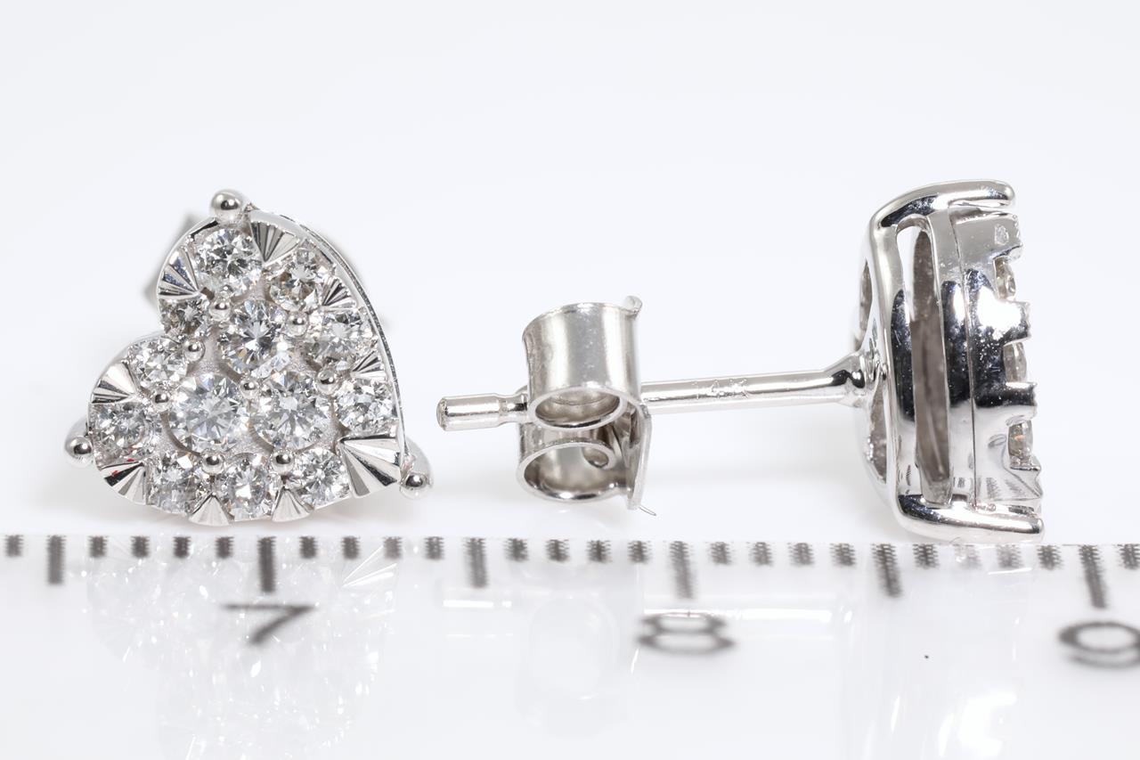 Diamond heart stud earrings with 26 round Diamonds totallling 0.50cts (Estimated grading: H SI). 14ct white gold. Weight: 2.0g (New)