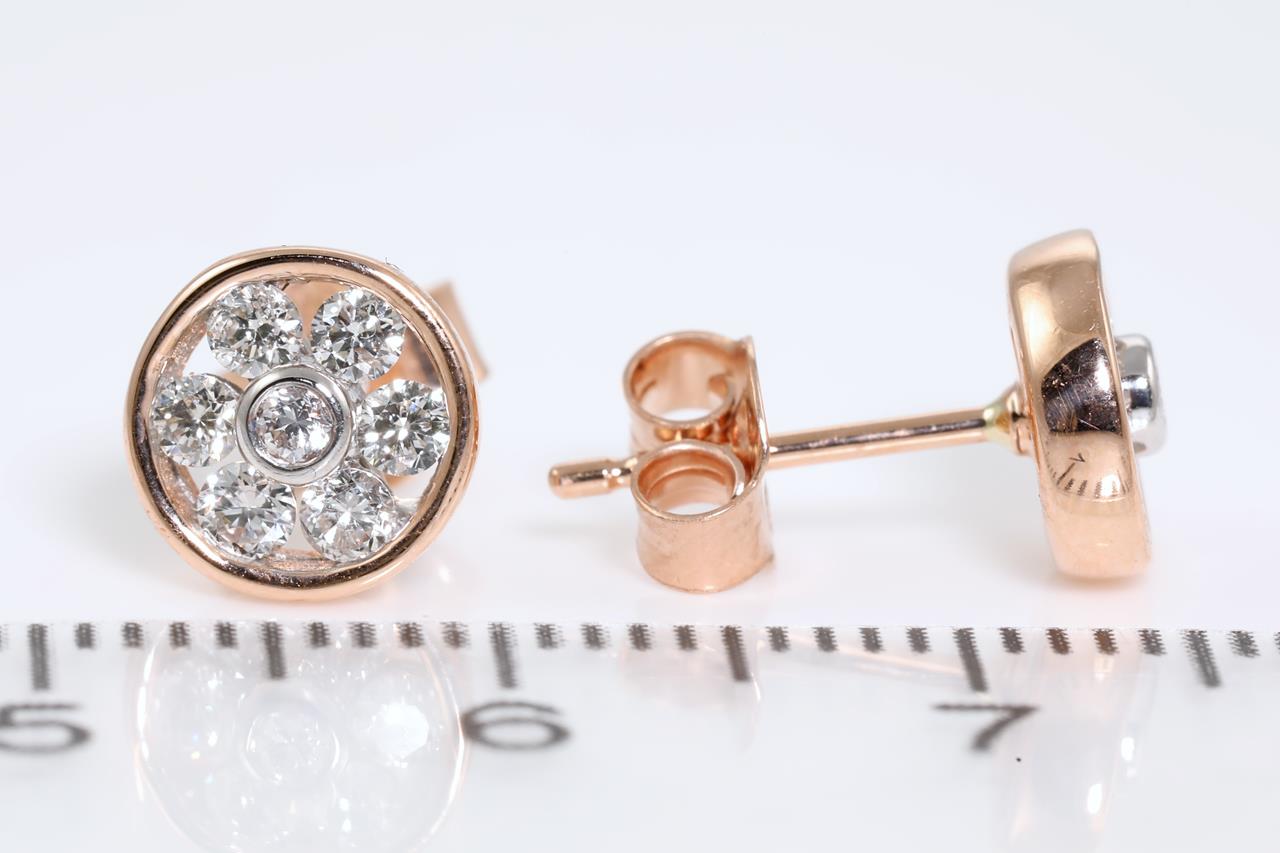 Diamond stud earrings with 14 round Diamonds totalling 0.50cts (Estimated grading: H SI). 14ct rose gold and white gold. Weight: 2.0g (New)