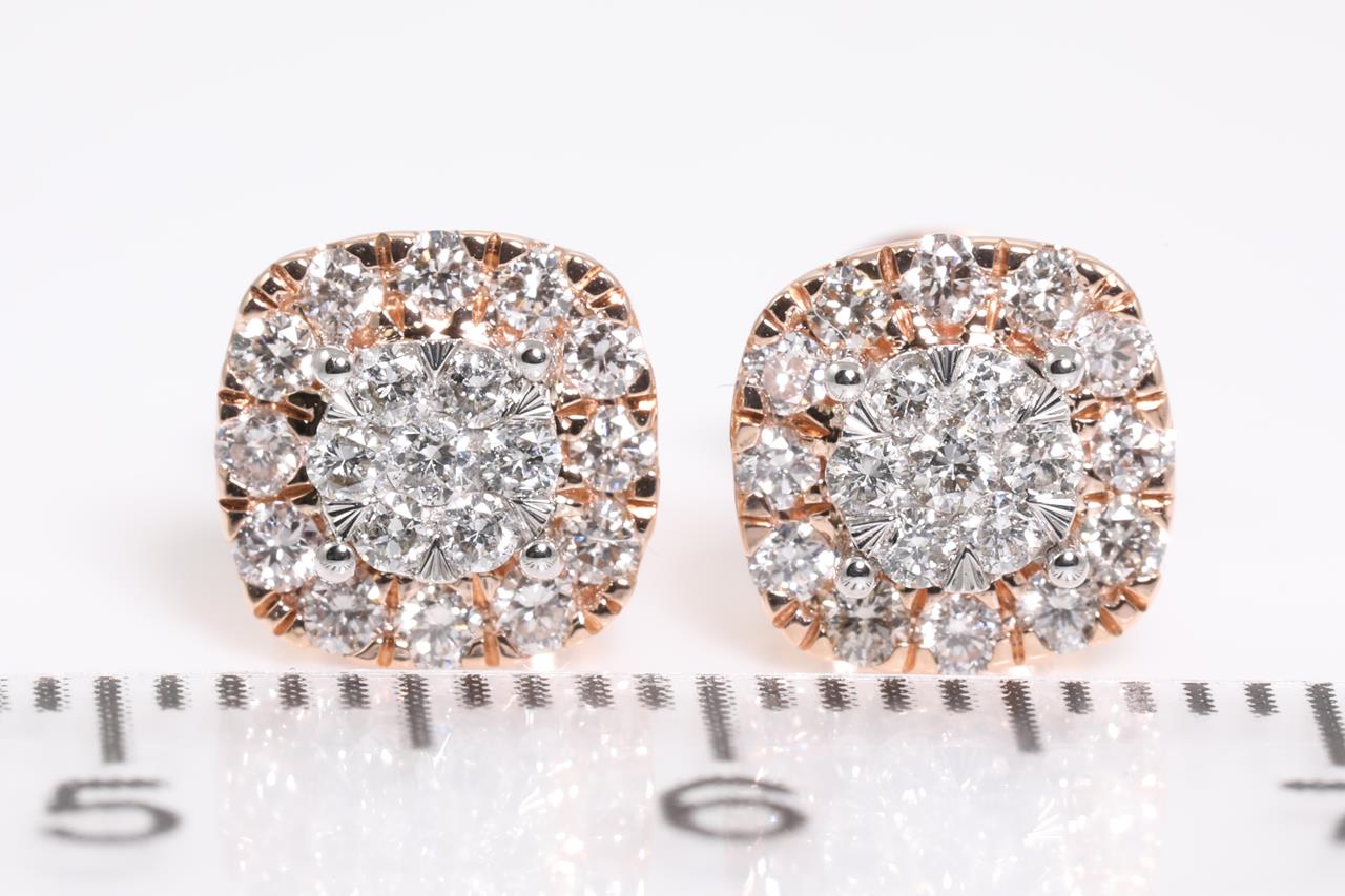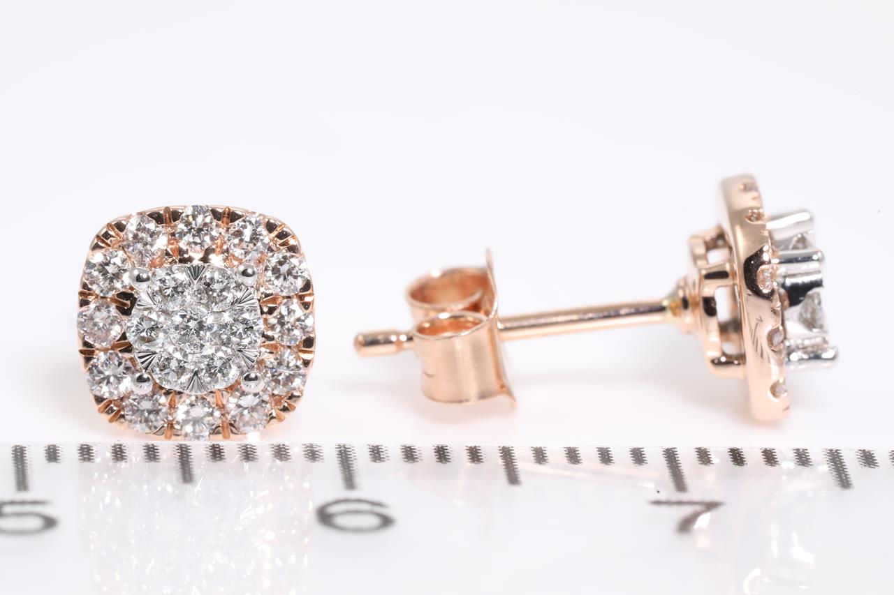 Diamond stud earrings with 38 round Diamonds totallling 0.50cts (Estimated grading: H SI). 14ct rose gold and white gold. Weight: 1.9g (New)
