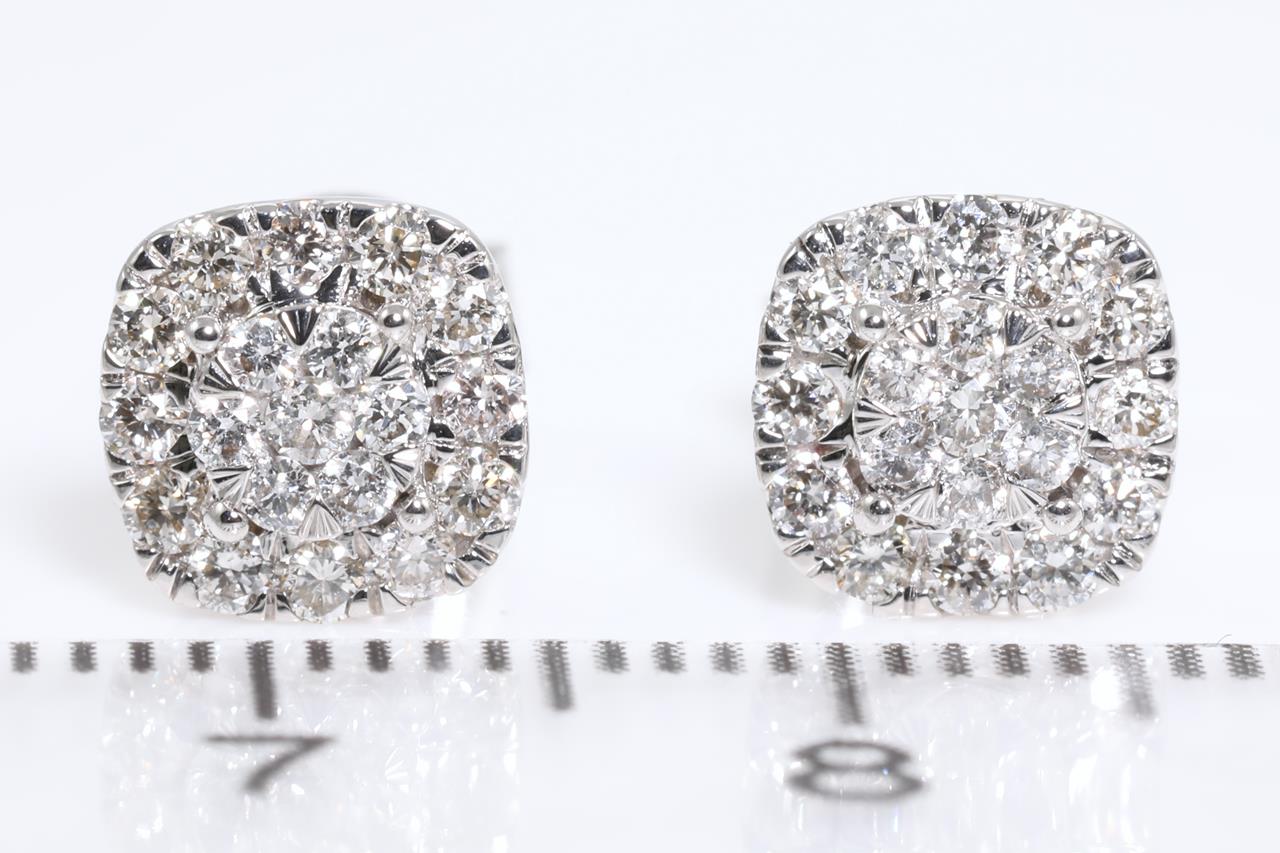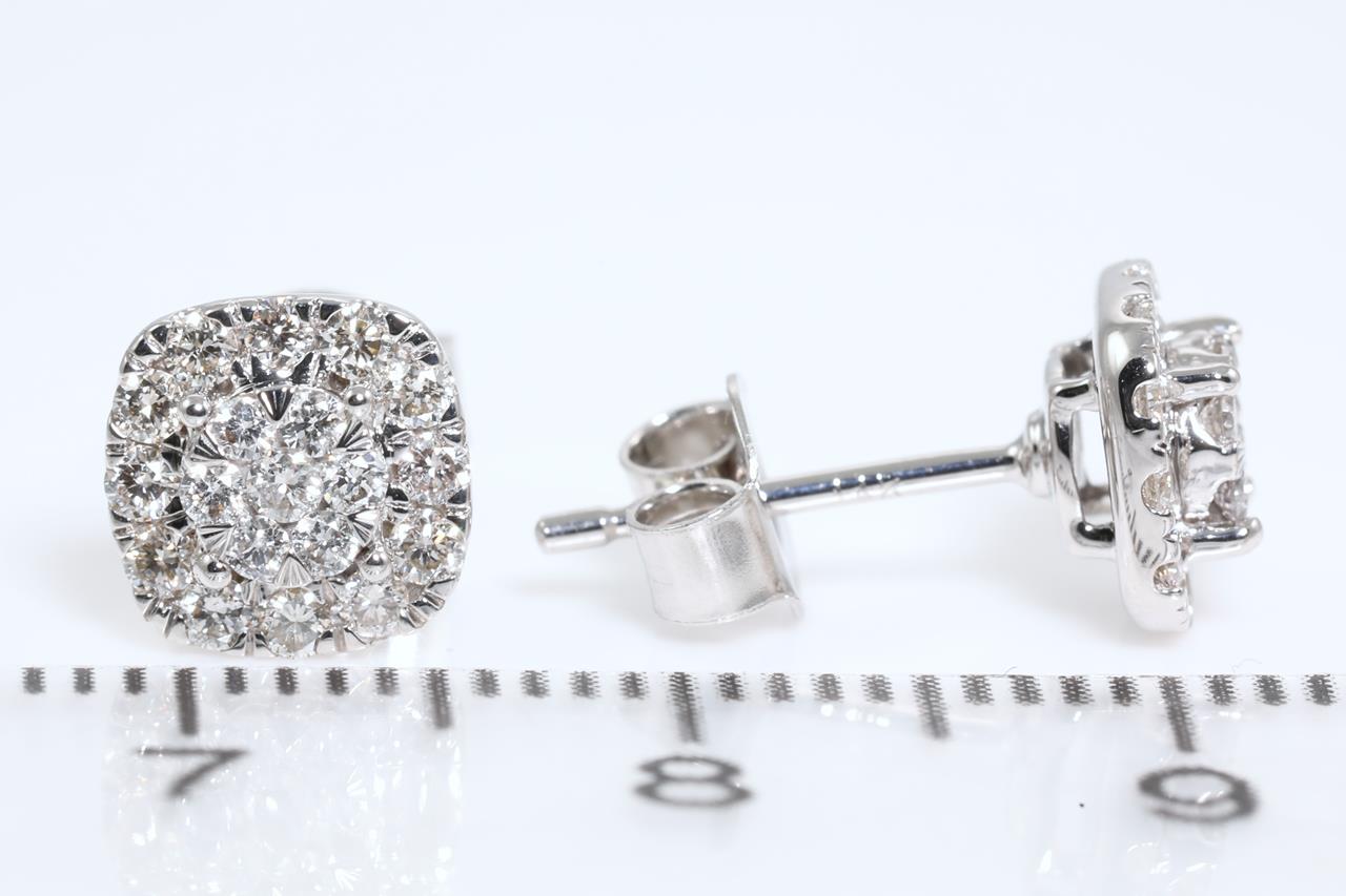 Diamond stud earrings with 38 round Diamonds totallling 0.50cts (Estimated grading: H SI). 14ct white gold. Weight: 1.9g (New)