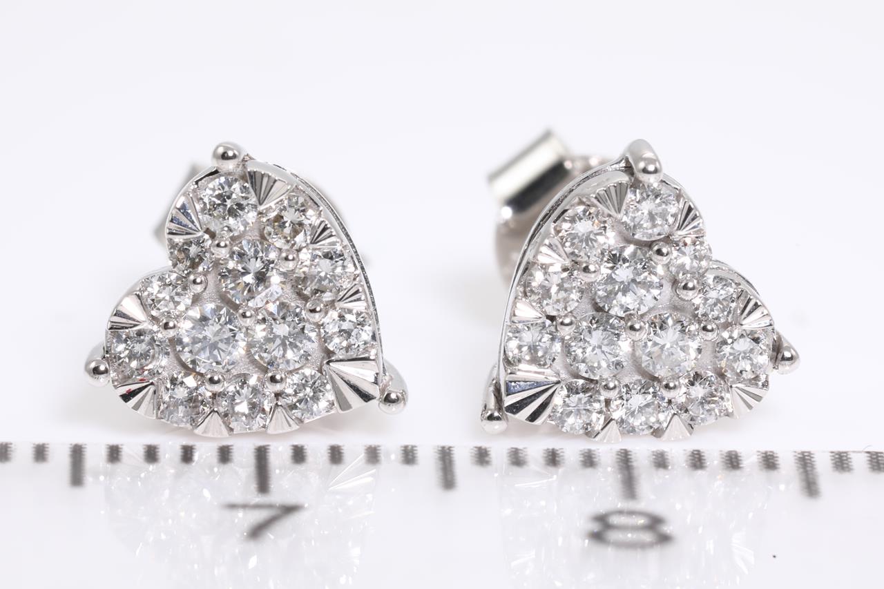 Diamond heart stud earrings with 26 round Diamonds totallling 0.50cts (Estimated grading: H SI). 14ct white gold. Weight: 2.0g (New)