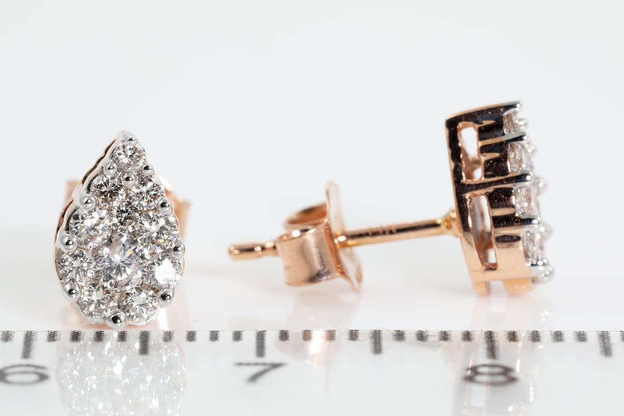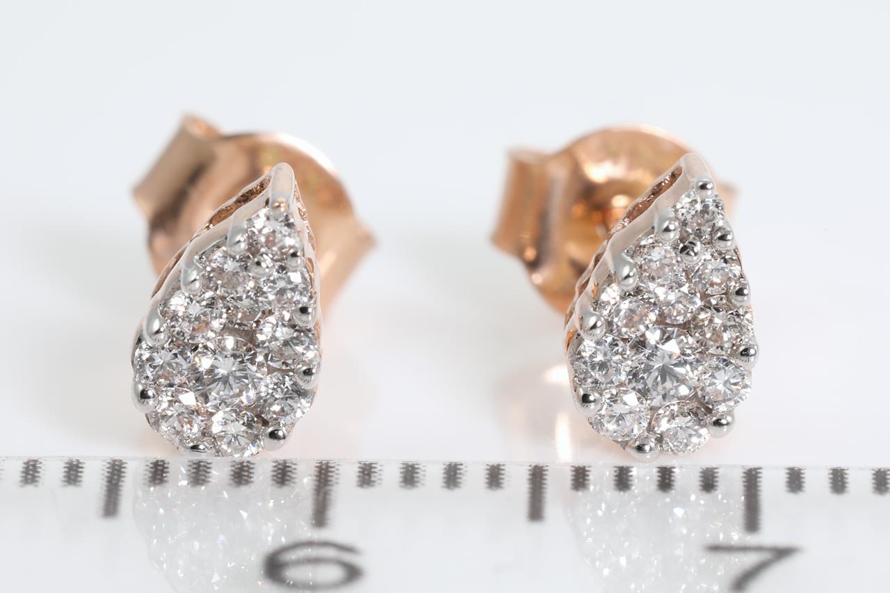 Diamond stud earrings with 22 round Diamonds totalling 0.50cts (Estimated grading: H SI). 14ct rose gold and white gold. Weight: 1.7g (New)