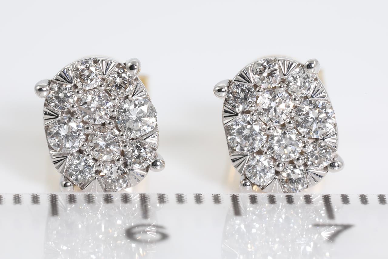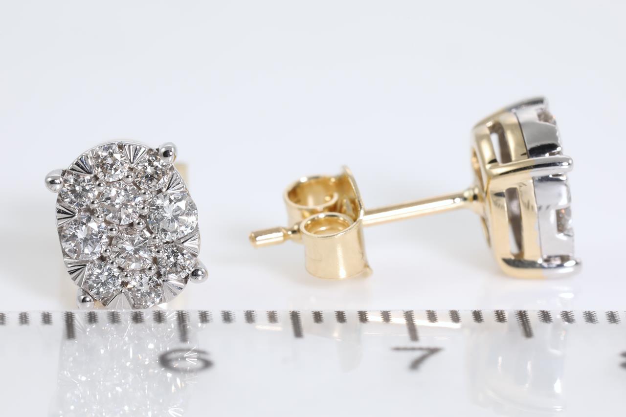 Diamond stud earrings with 20 round Diamonds totalling 0.50cts (Estimated grading: H SI). 14ct yellow gold and white gold. Weight: 2.0g (New)