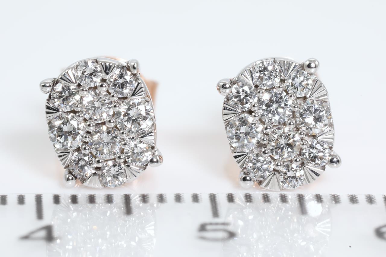 Diamond stud earrings with 20 round Diamonds totallling 0.50cts (Estimated grading: H SI). 14ct rose gold and white gold. Weight: 2.0g (New)