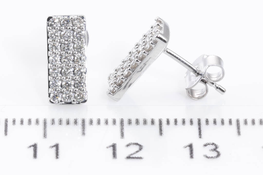 Diamond earrings with 42 round Diamonds totalling 0.50cts. (Estimated grading: J SI). 14ct white gold. Weight: 2.6g. (New)