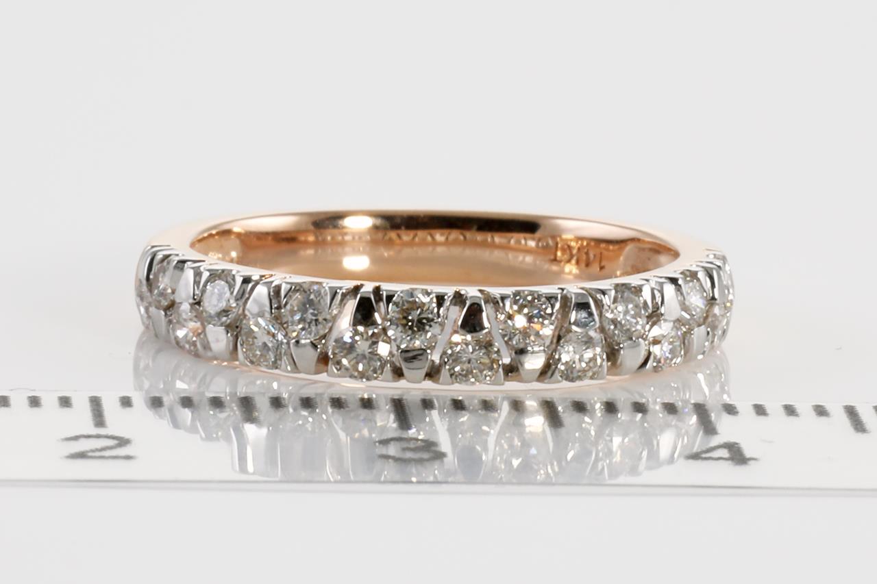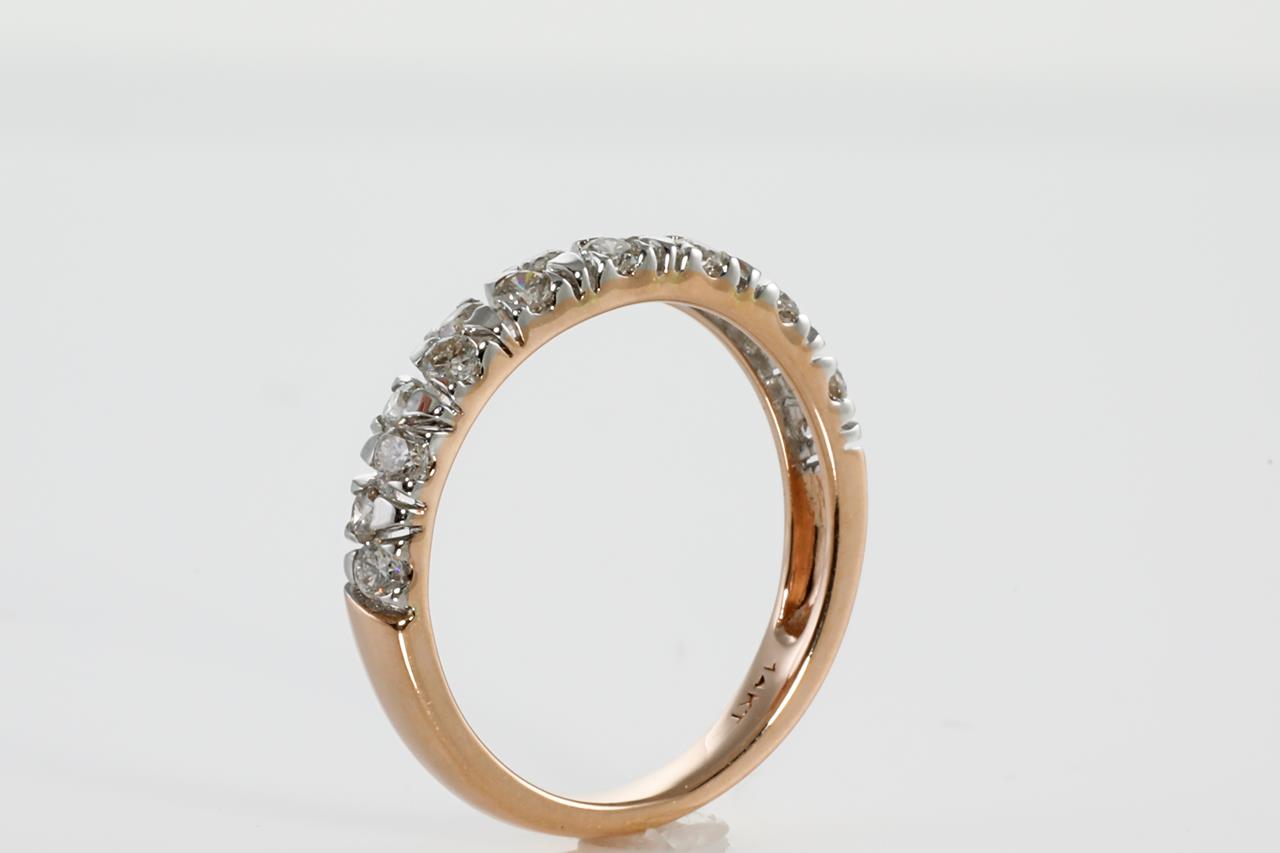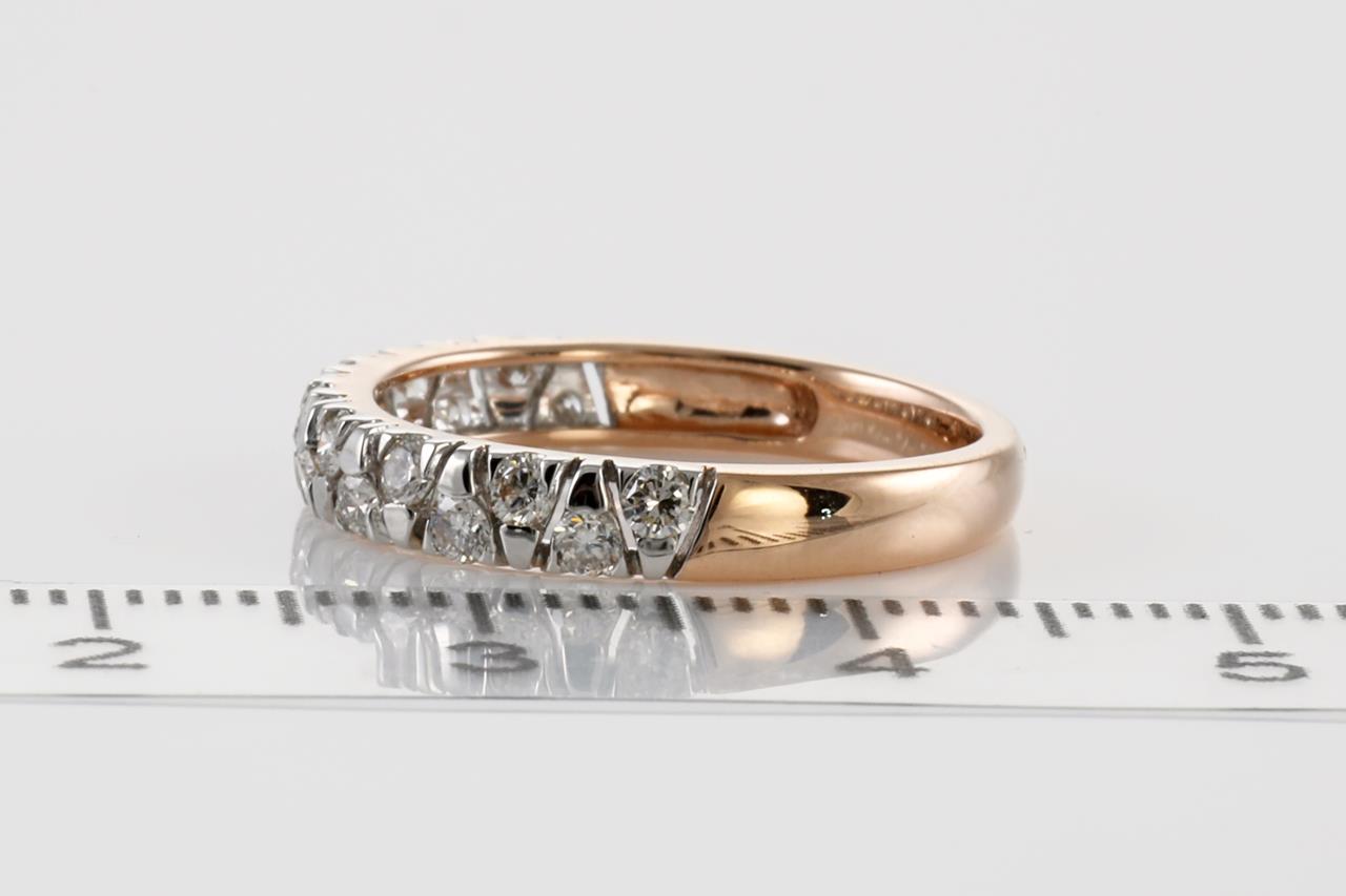 Diamond half hoop eternity ring with round Diamonds totalling 0.50cts (Estimated grading: H SI). 14ct rose gold. Ring size L - Note this ring cannot be resized. Weight: 2.2g (New)