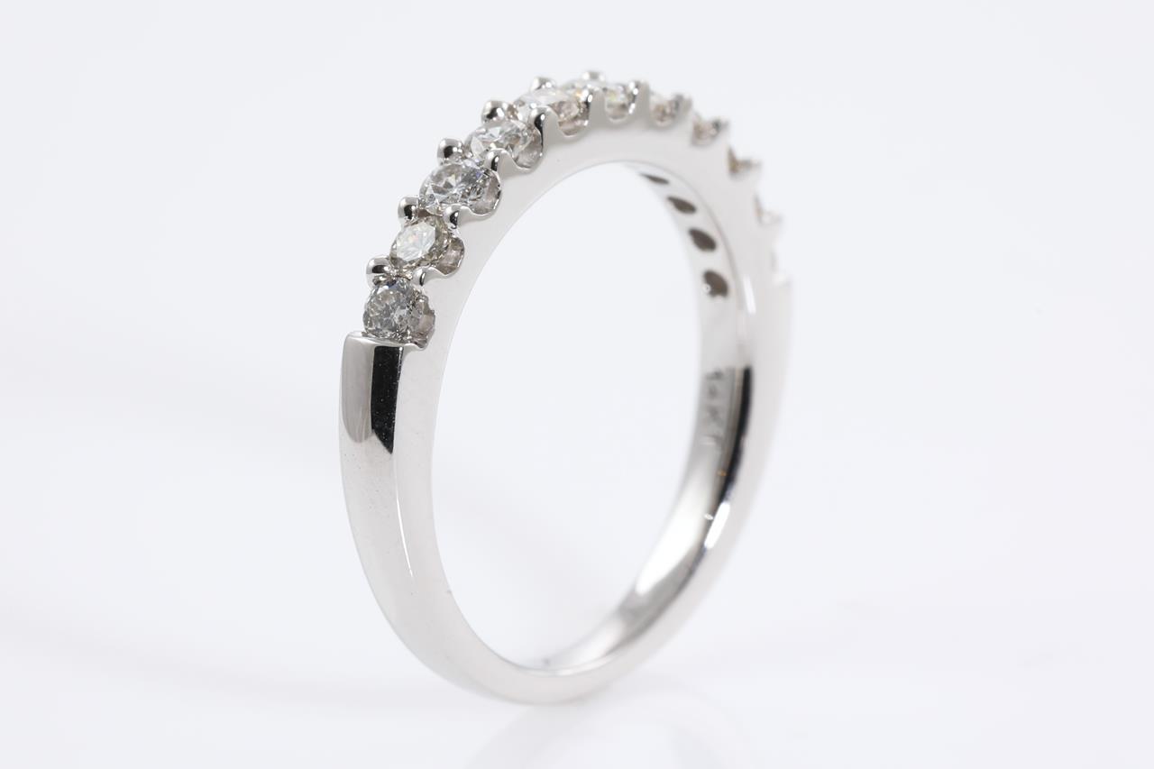 Diamond eternity ring with 11 round Diamonds totalling 0.50cts (Estimated Grading: H SI). 14ct white gold. Ring size L - can be resized up by a maximum of 3 sizes, down with ring clip. Weight: 2.9g (New)