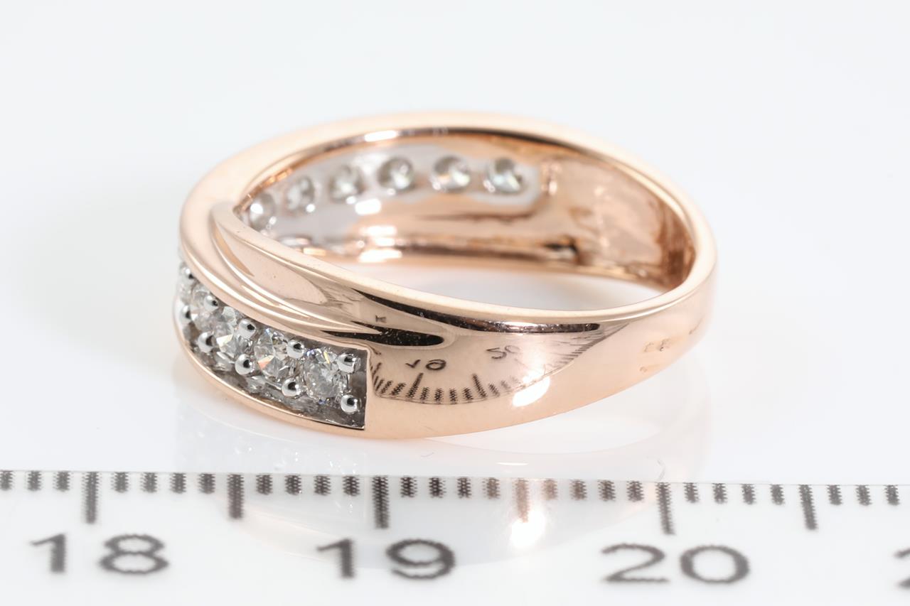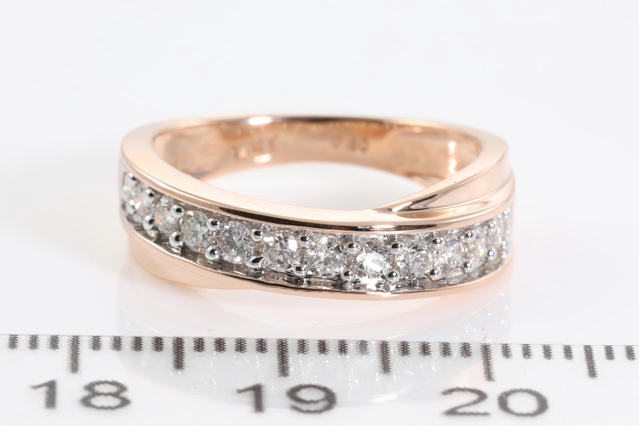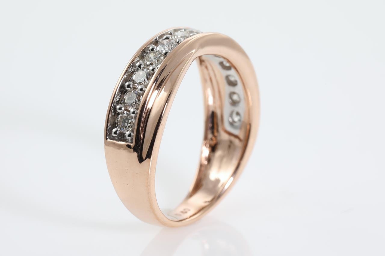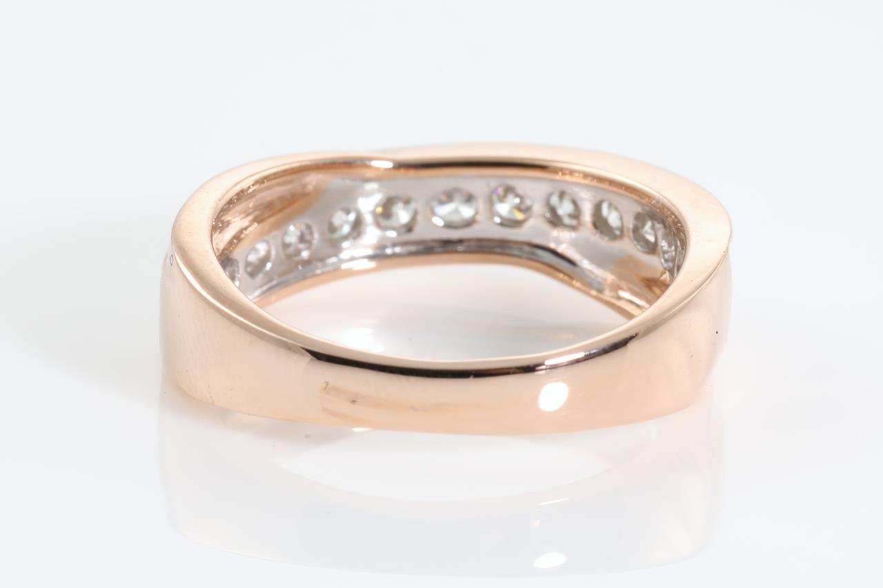 Diamond eternity ring with 13 round Diamonds totalling 0.50cts (Estimated Grading: H SI). 14ct rose & white gold. Ring size K1/2. Weight: 3.5g (New).