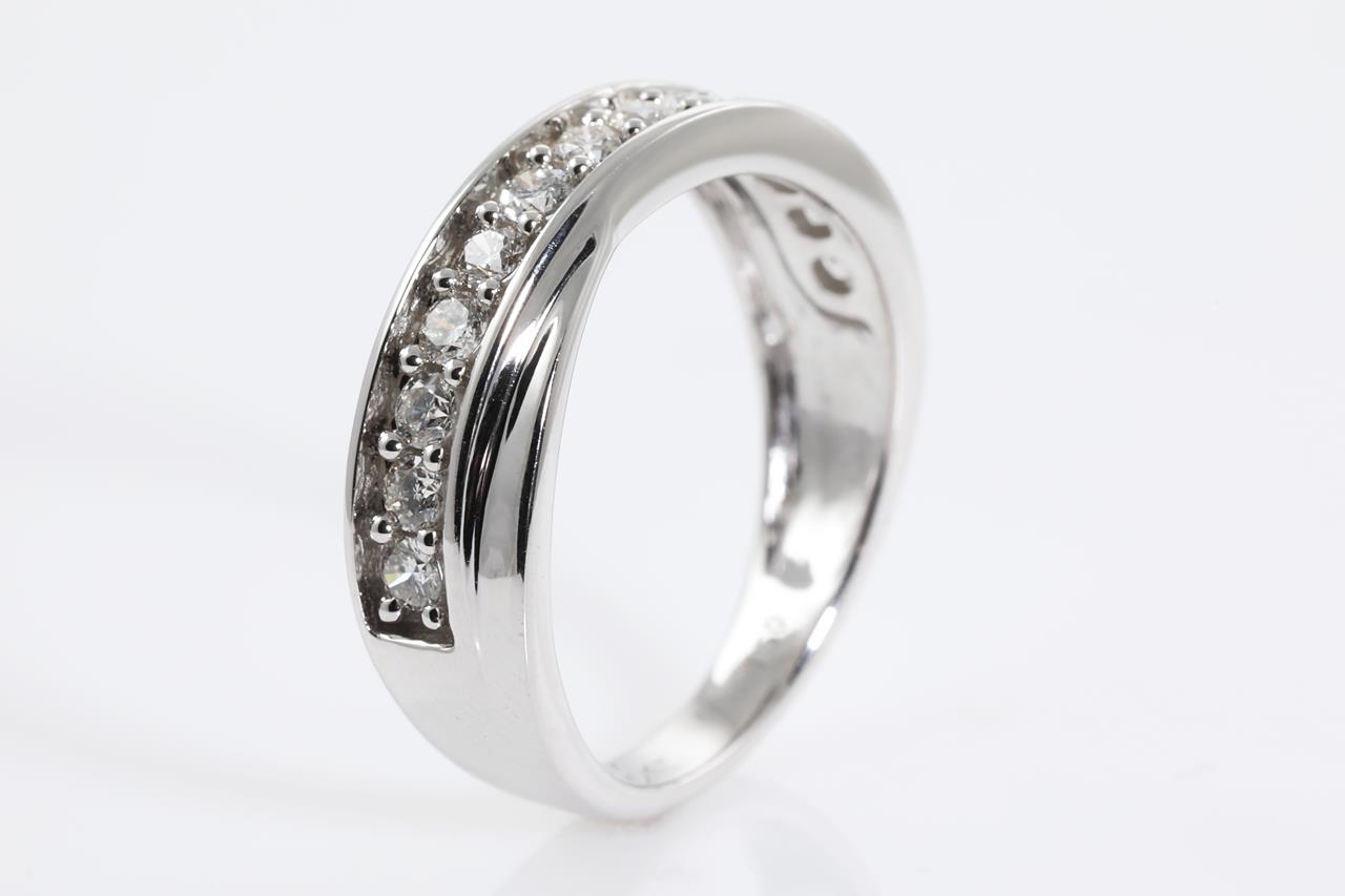 Diamond eternity ring with 13 round Diamonds totalling 0.50cts (Estimated Grading: H SI). 14ct white gold. Ring size M. Weight: 3.6g (New).