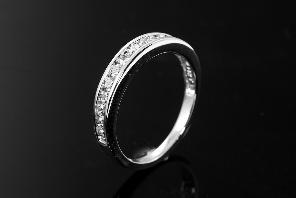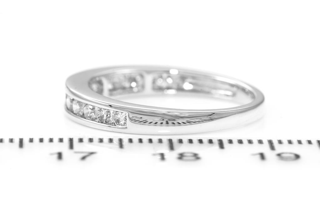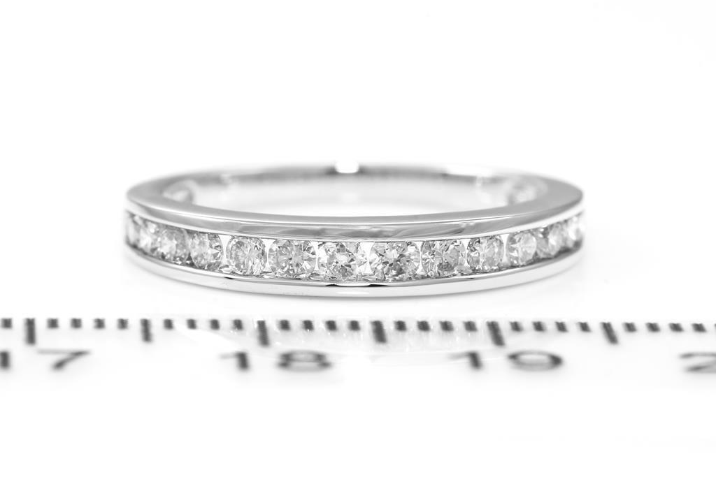 Diamond eternity ring with 14 round Diamonds totalling 0.50cts (Estimated grading: H SI). 14ct white gold. Ring size M1/2 - ring resizing is not recommended. Weight: 2.6g. (New)