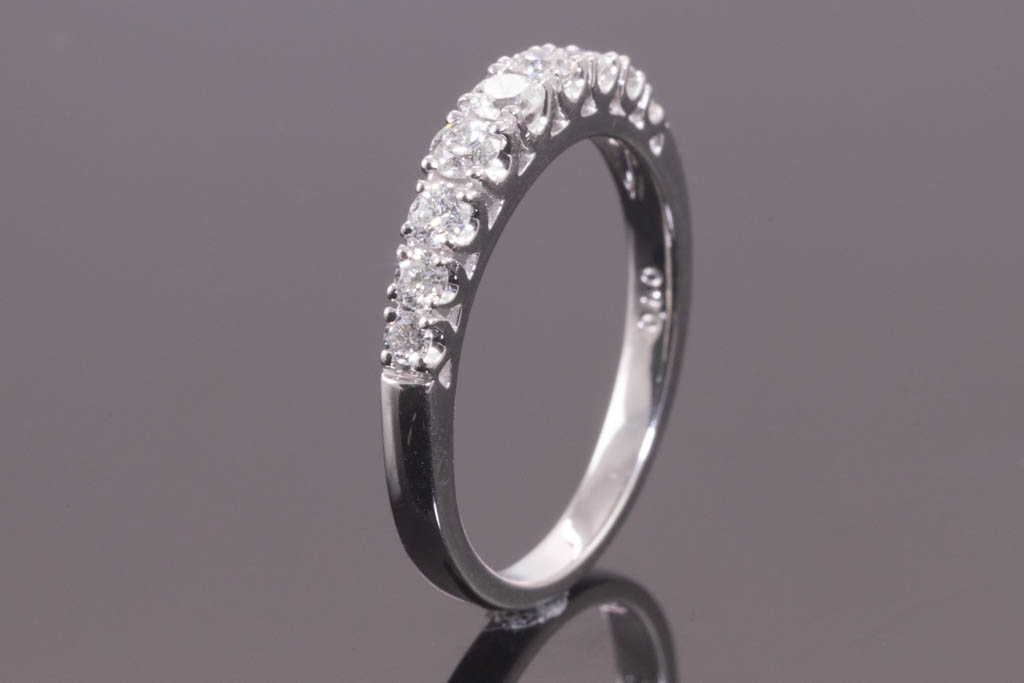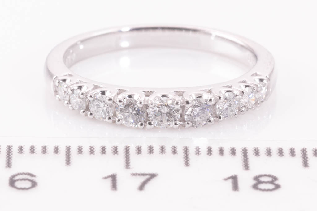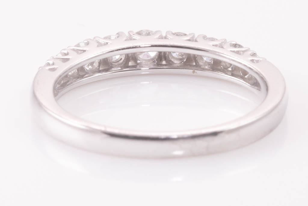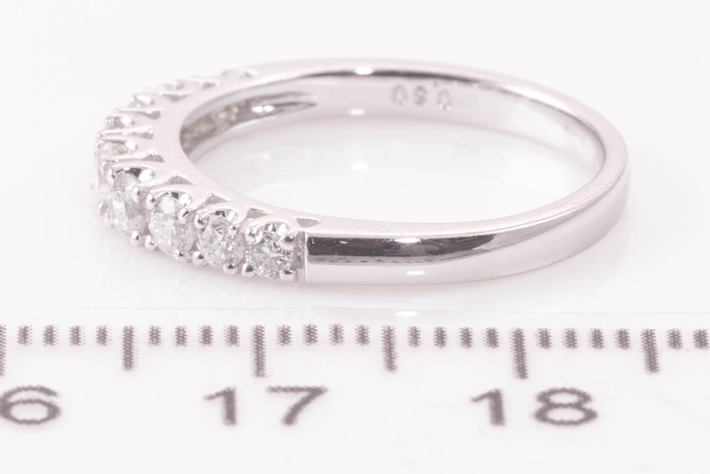 Diamond eternity ring with 9 round Diamonds totalling 0.50cts (Estimated grading: G-H SI). Platinum. Ring size L1/2. Weight: 3.7g. (Pre-owned)