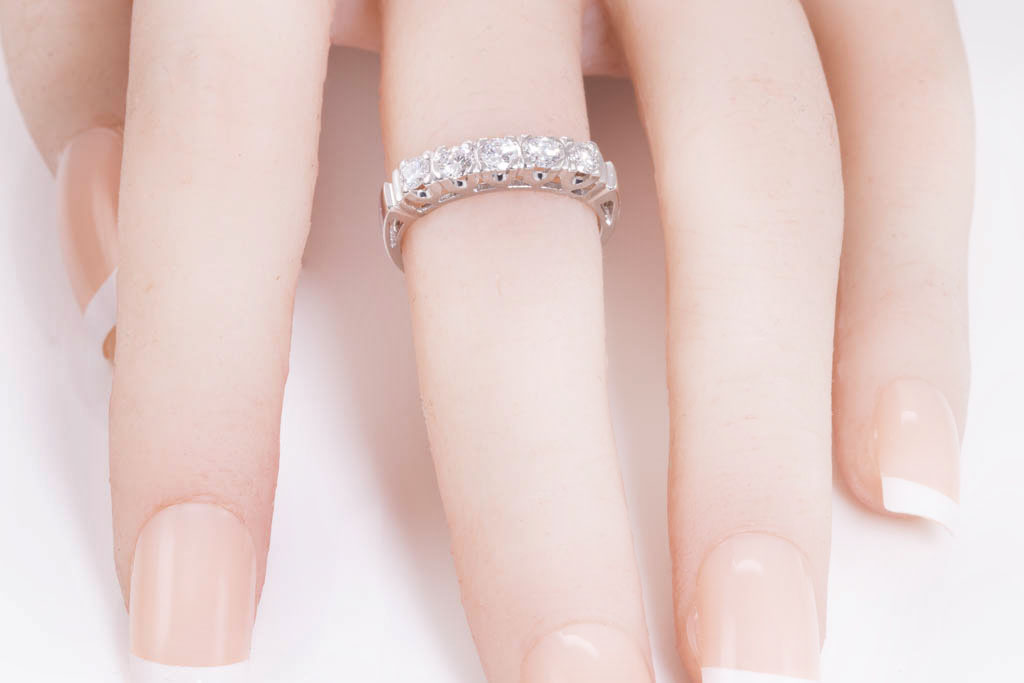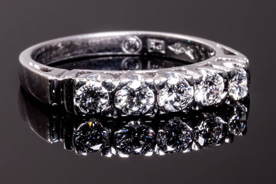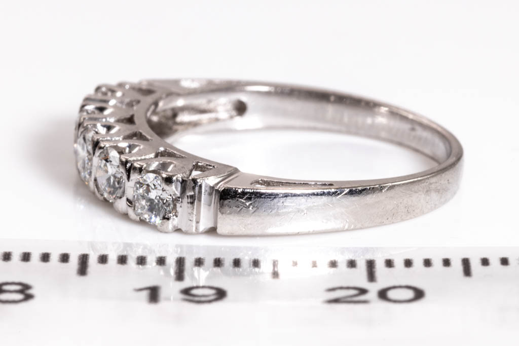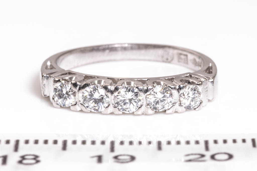 Diamond Eternity ring with 5 round Diamonds totalling 0.50cts (Estimated grading: G VS-SI). Platinum. Ring size L1/2. Weight: 3.8g. (Pre-owned)