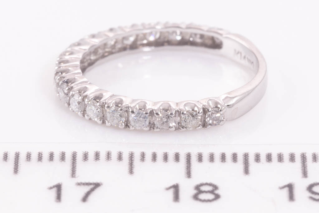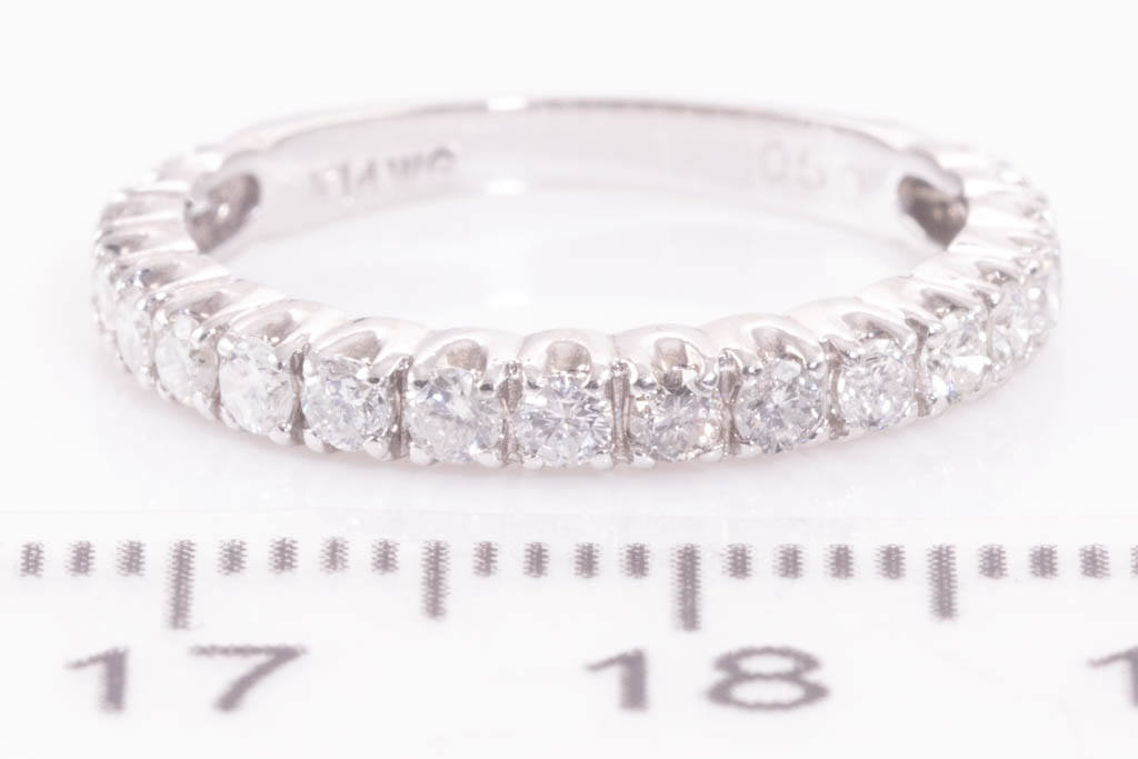 Diamond 3/4 Eternity ring with round Diamonds totalling 0.50cts (Estimated grading: H-I SI). 14ct white gold. Ring size K. Weight: 1.6g. (Pre-owned)