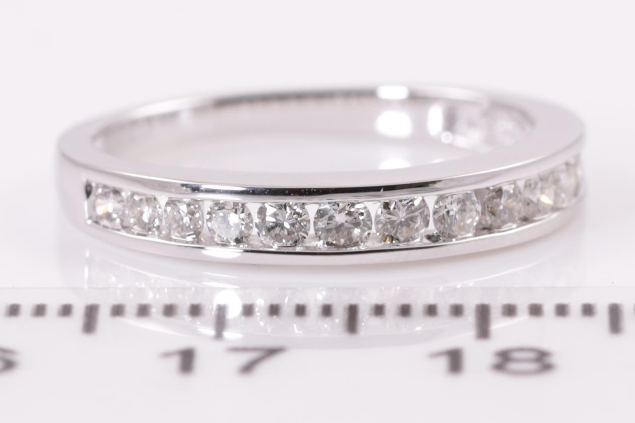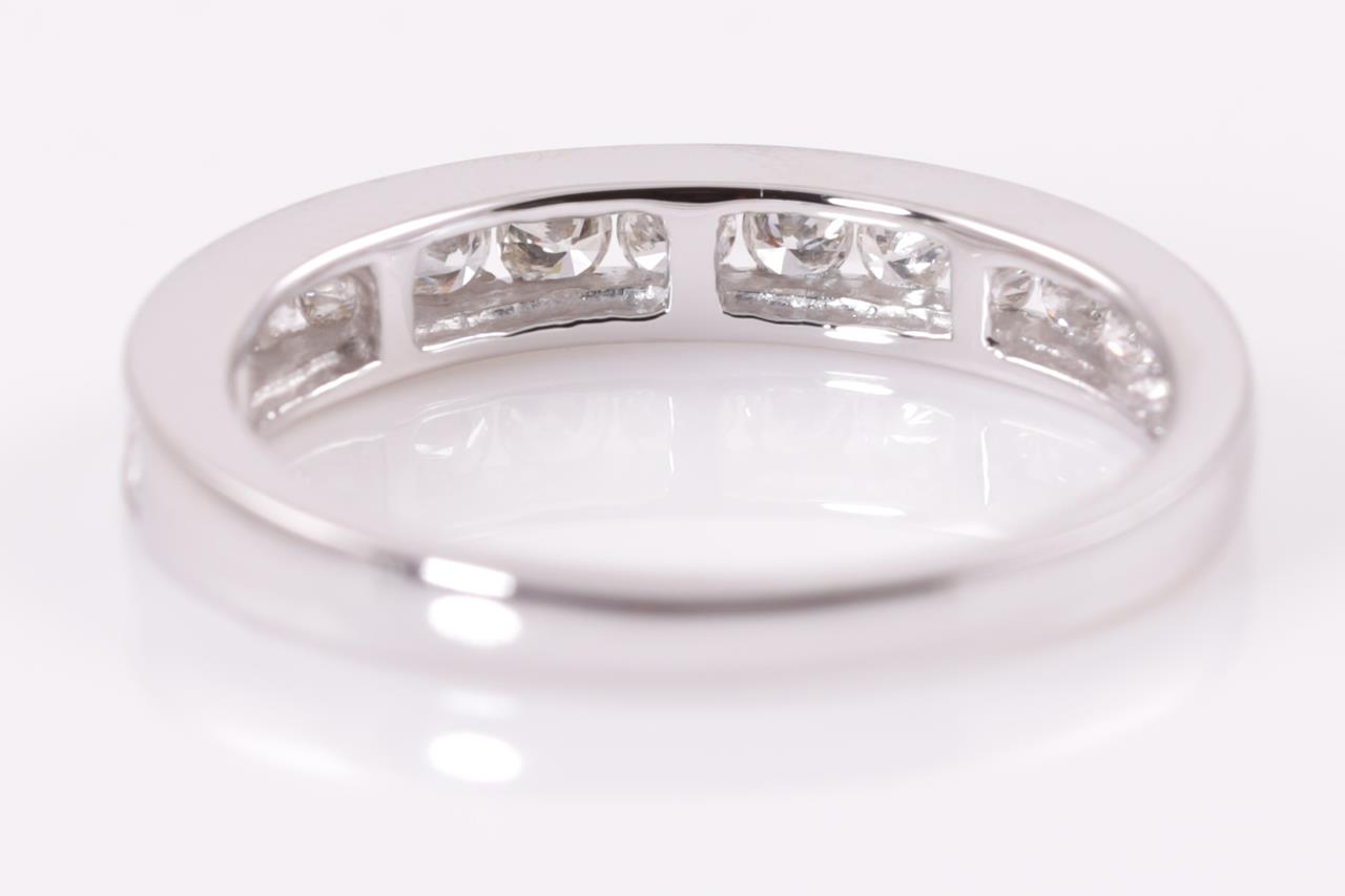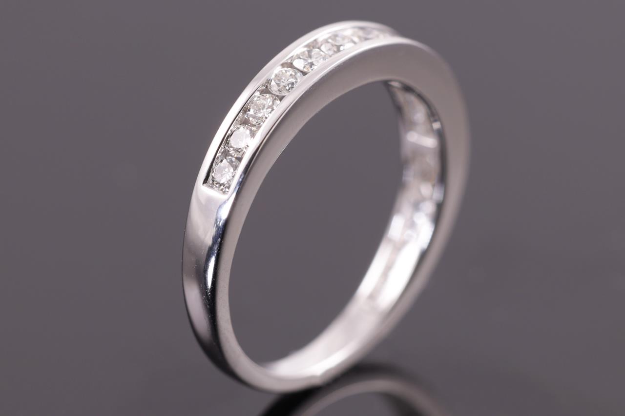 Diamond half hoop eternity ring with round Diamonds totalling 0.50cts (Estimated grading: H SI). 14ct white gold. Size: M1/2. Weight: 2.6g. (New)