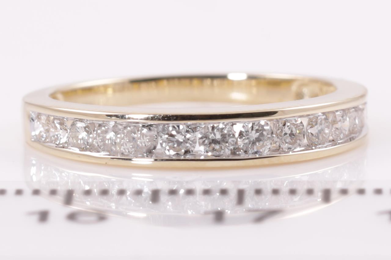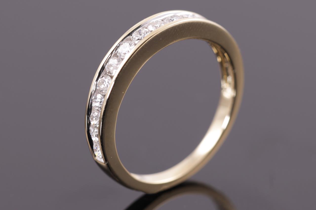 Diamond half hoop eternity ring with round Diamonds totalling 0.50cts (Estimated grading: H SI). 14ct yellow gold. Size: M1/2. Weight: 2.6g. (New)