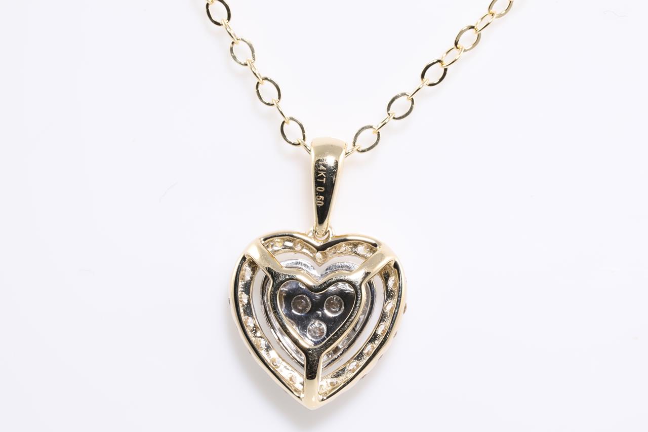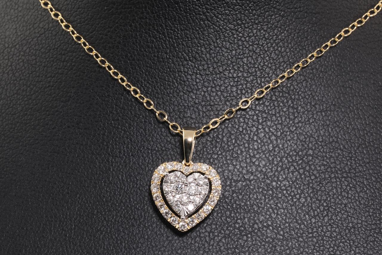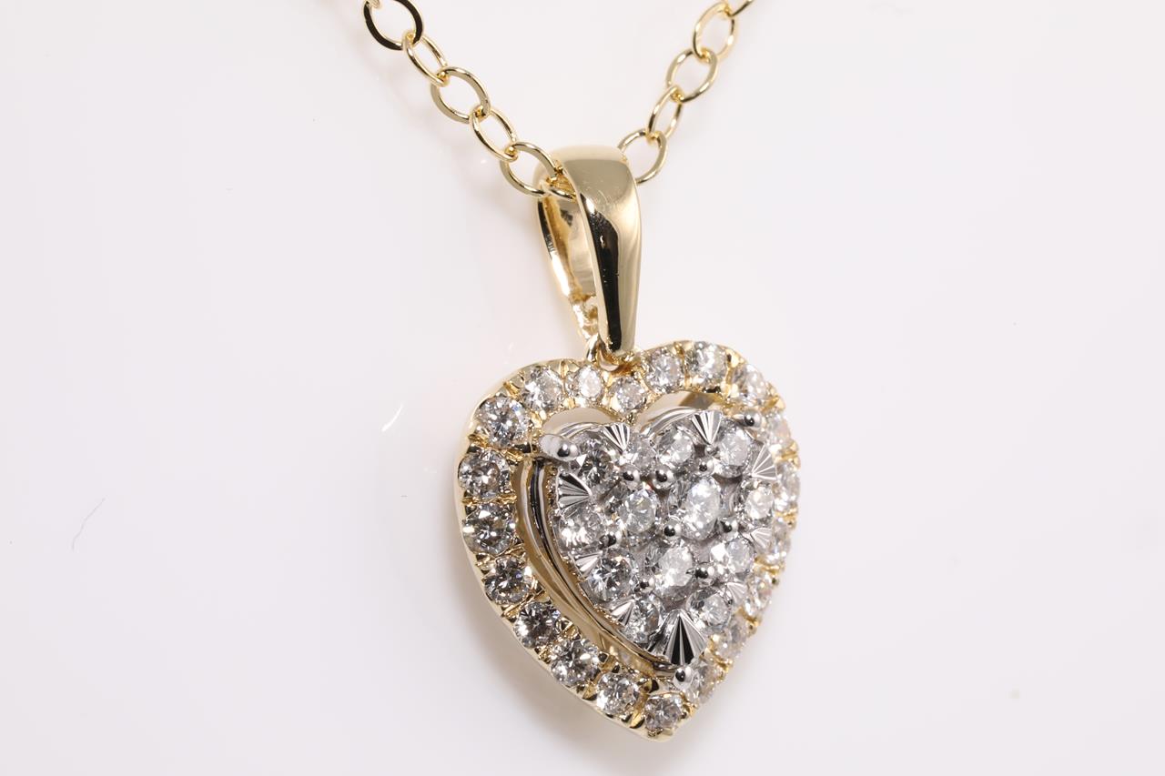 Diamond heart pendant with round Diamonds totalling 0.50cts (Estimated grading: H SI). 14ct yellow and white gold with 18ct gold 45cm chain. Weight: 3g (New)