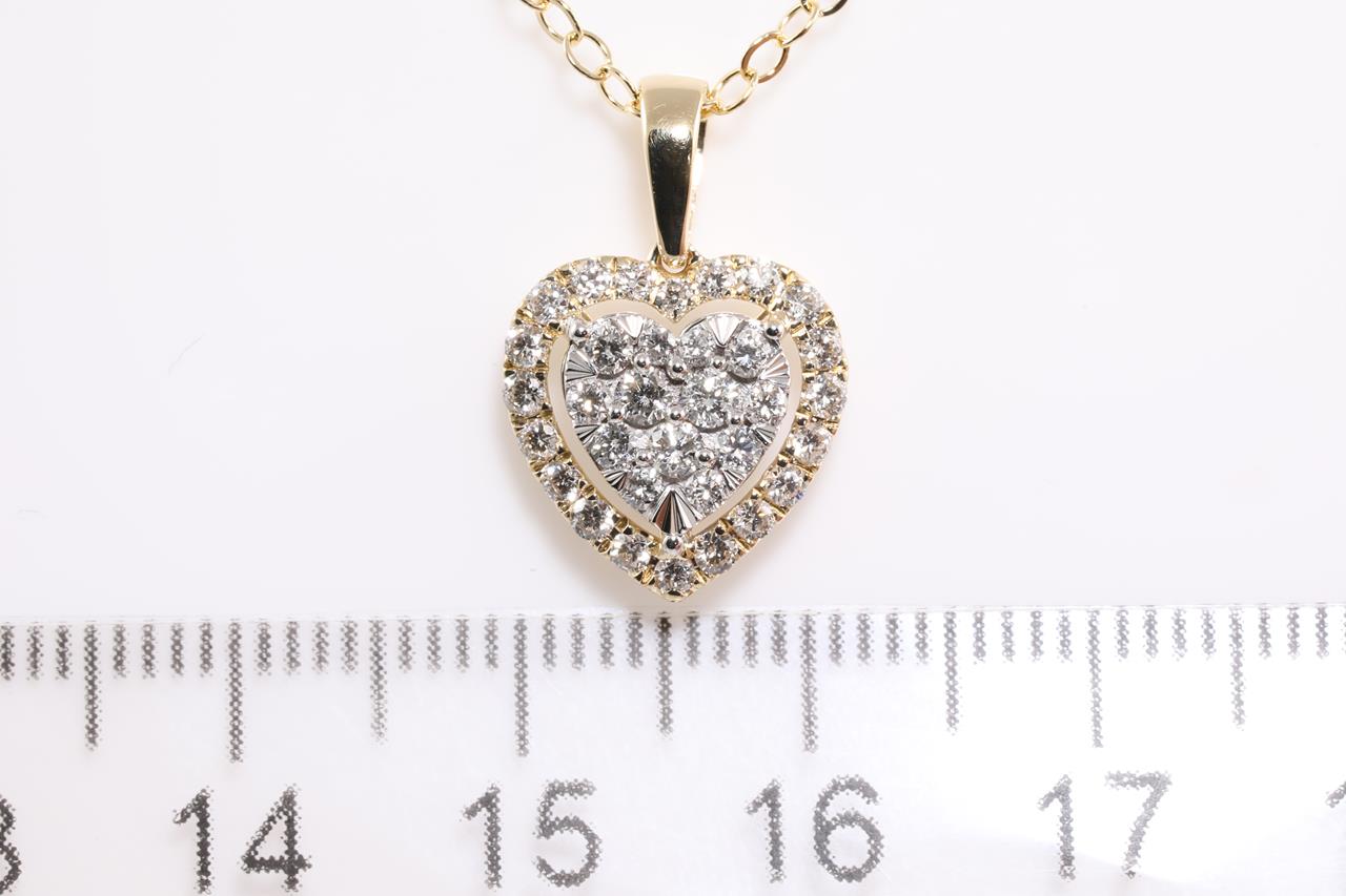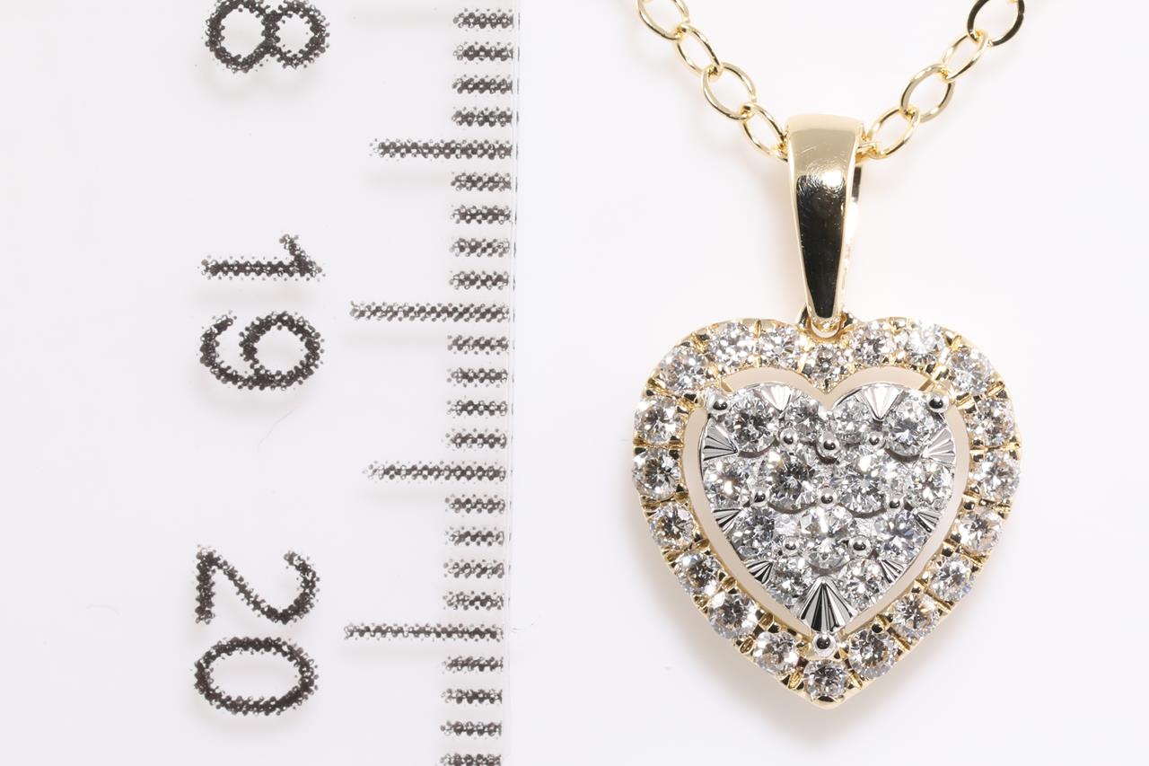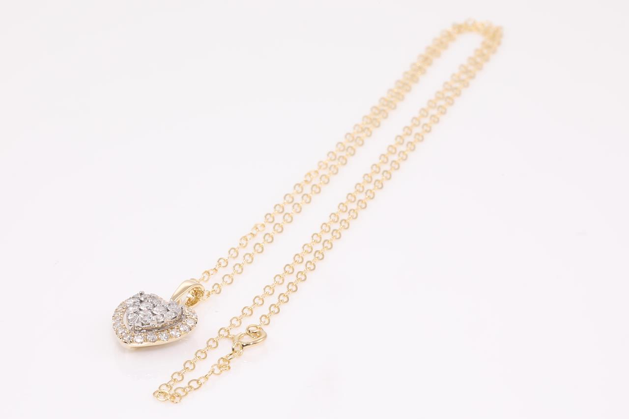 Diamond heart pendant with round Diamonds totalling 0.50cts (Estimated grading: H SI). 14ct yellow and white gold with 18ct gold 45cm chain. Weight: 3g (New)