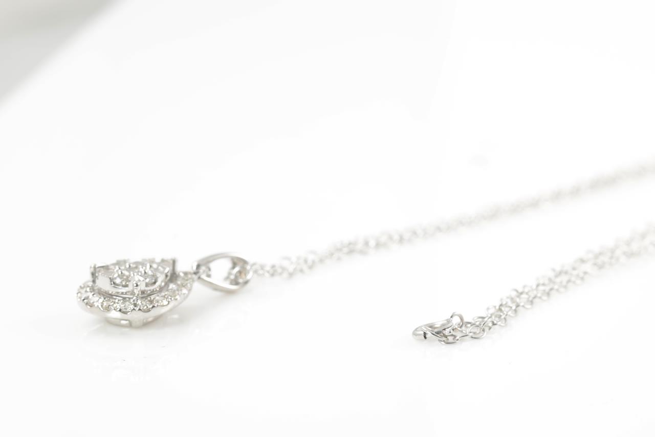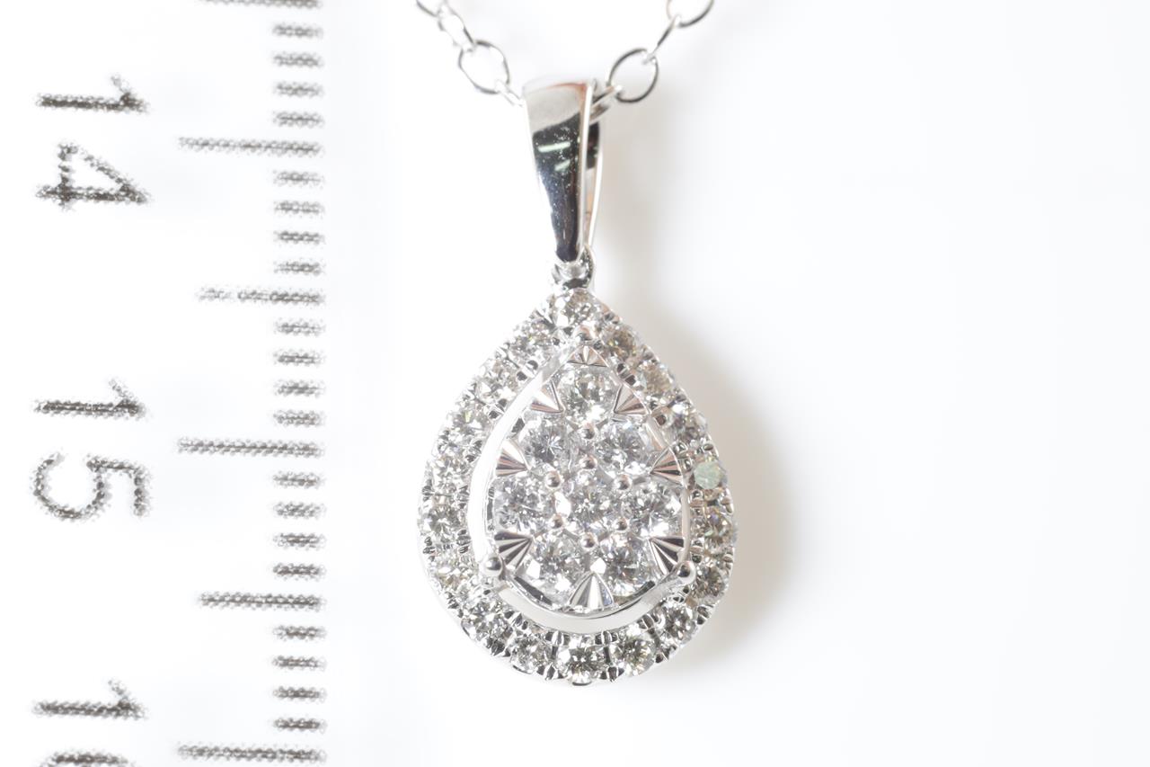 Diamond pendant with 26 round Diamonds totalling 0.50cts (Estimated grading: H SI). 14ct white gold with 44cm chain. Weight: 2.8g. (New)