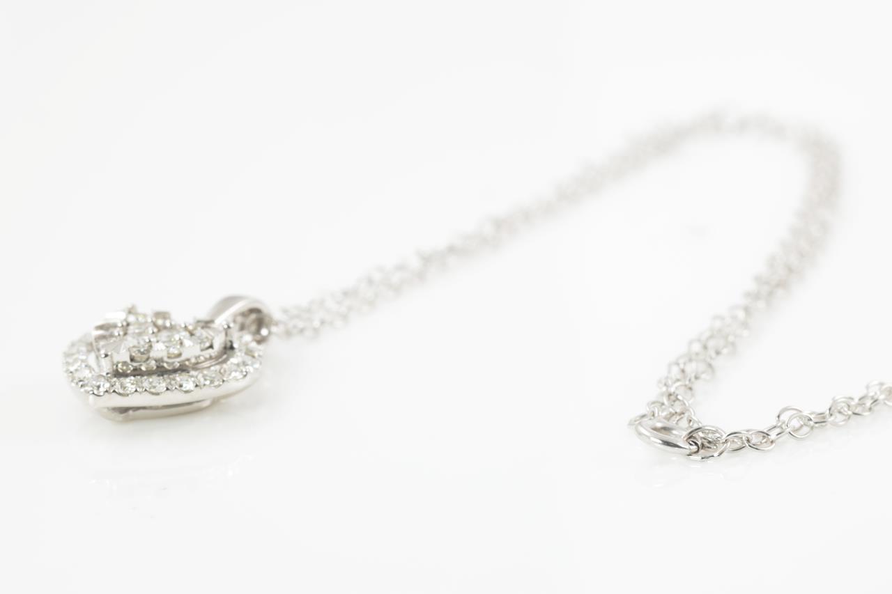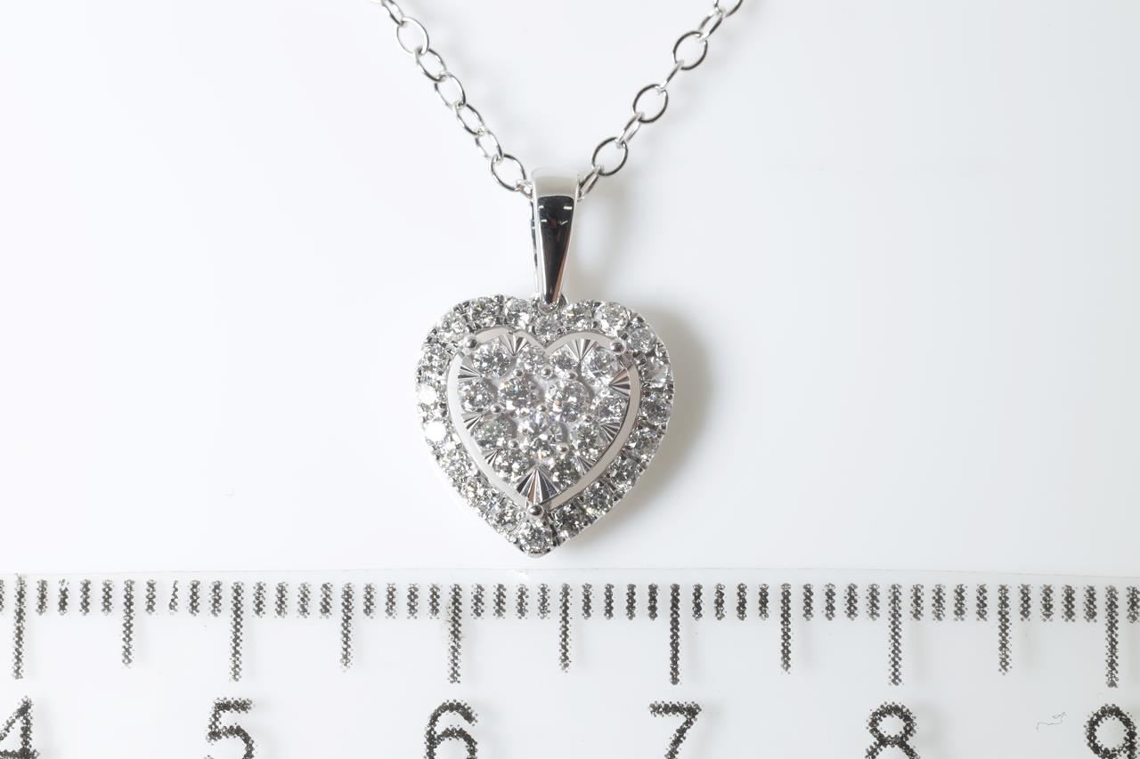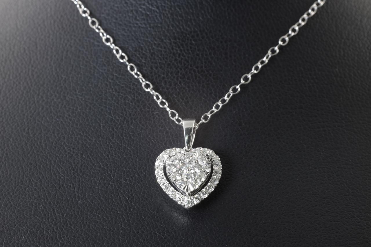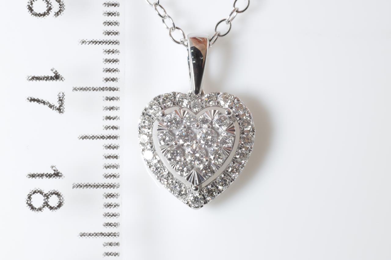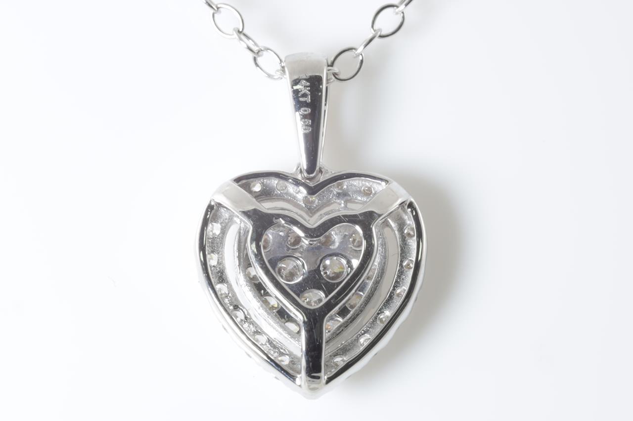 Diamond heart pendant with round Diamonds totalling 0.50cts (Estimated grading: H SI). 14ct white gold with 44cm chain. Weight: 2.7g. (New)