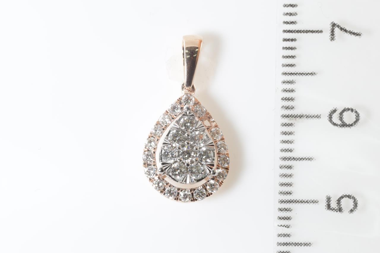 Diamond pendant with 26 round Diamonds totalling 0.50cts (Estimated grading: H SI). 14ct rose gold and white gold. Weight:1.4g (New)