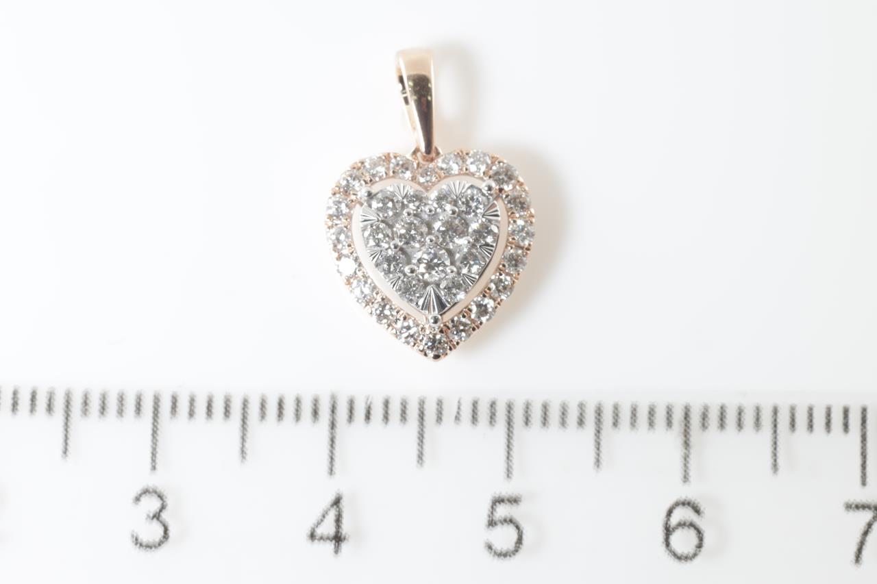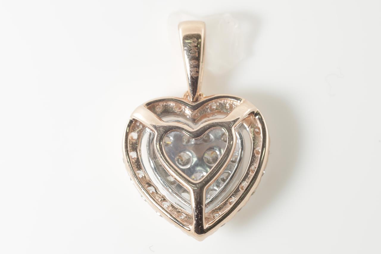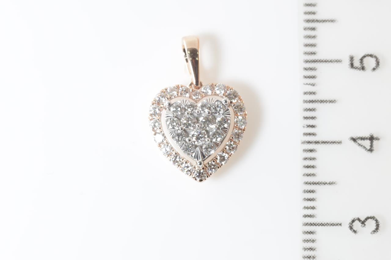 Diamond heart pendant with round Diamonds totalling 0.50cts (Estimated grading:H SI). 14ct rose gold and white gold. Weight:1.4g (New)