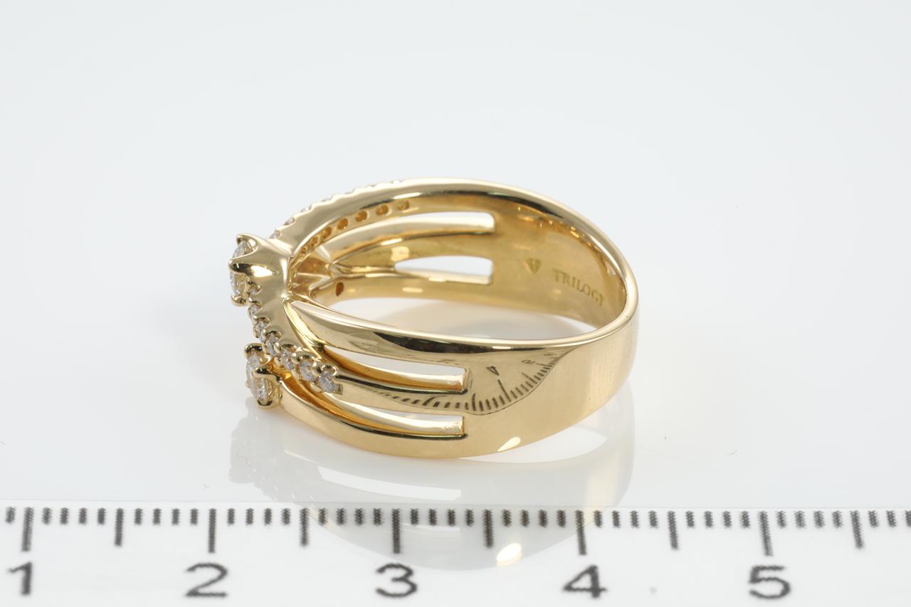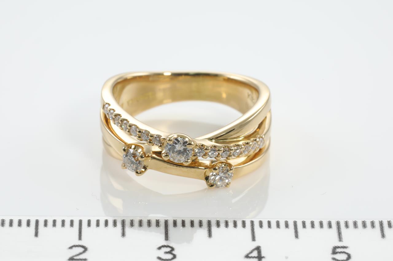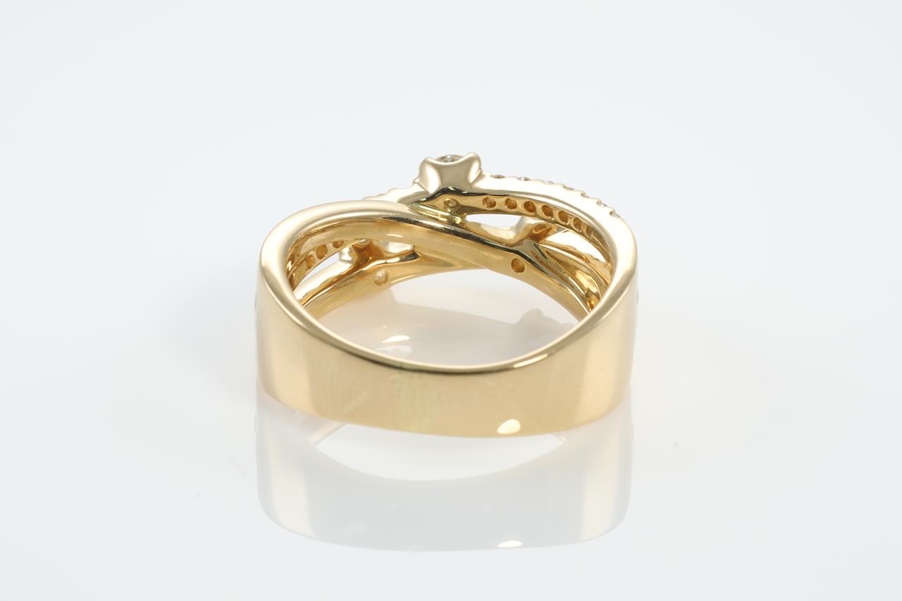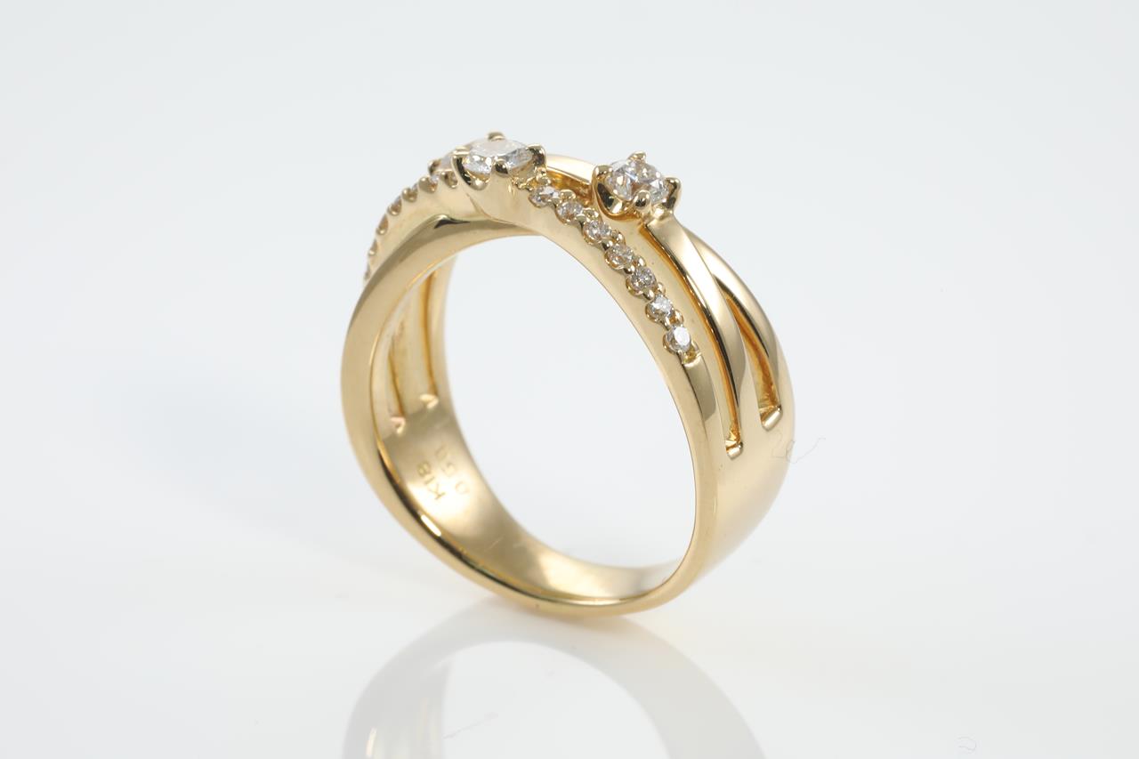 Diamond dress ring with round Diamonds totalling 0.50cts (estimated grading: G-H SI). 18ct yellow gold. Ring size N1/2. Ring resizing is not recommended. Weight: 8.4g (pre-owned)