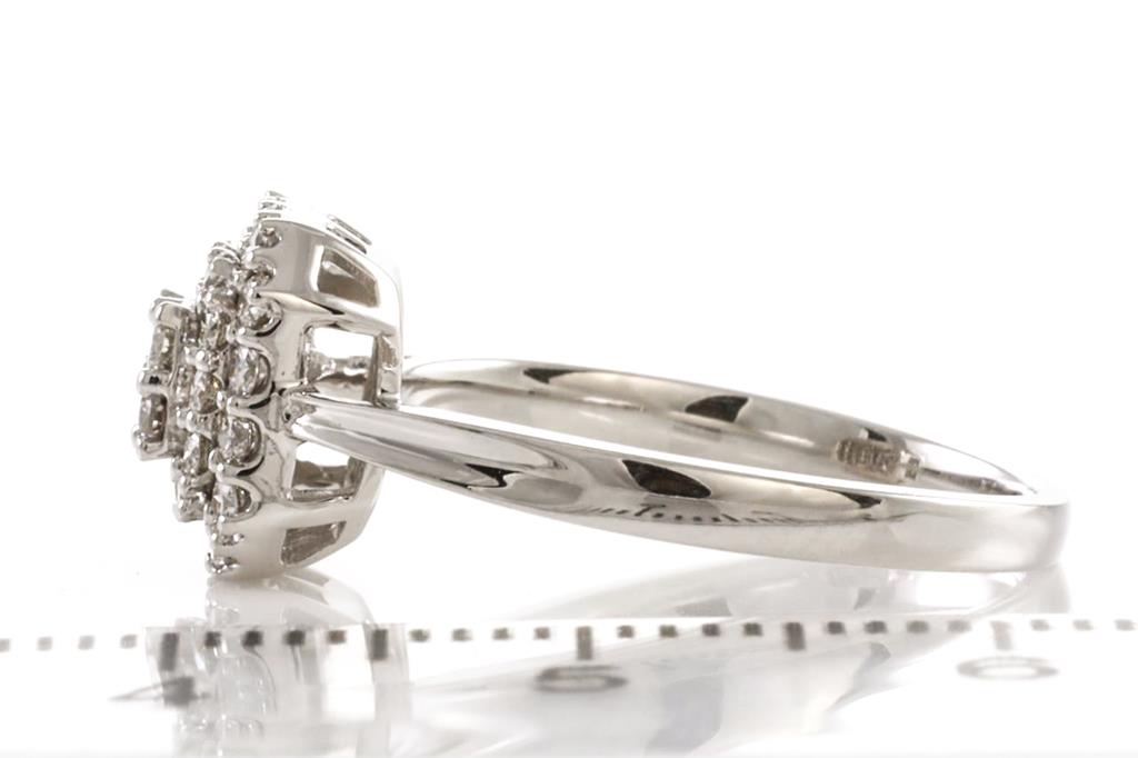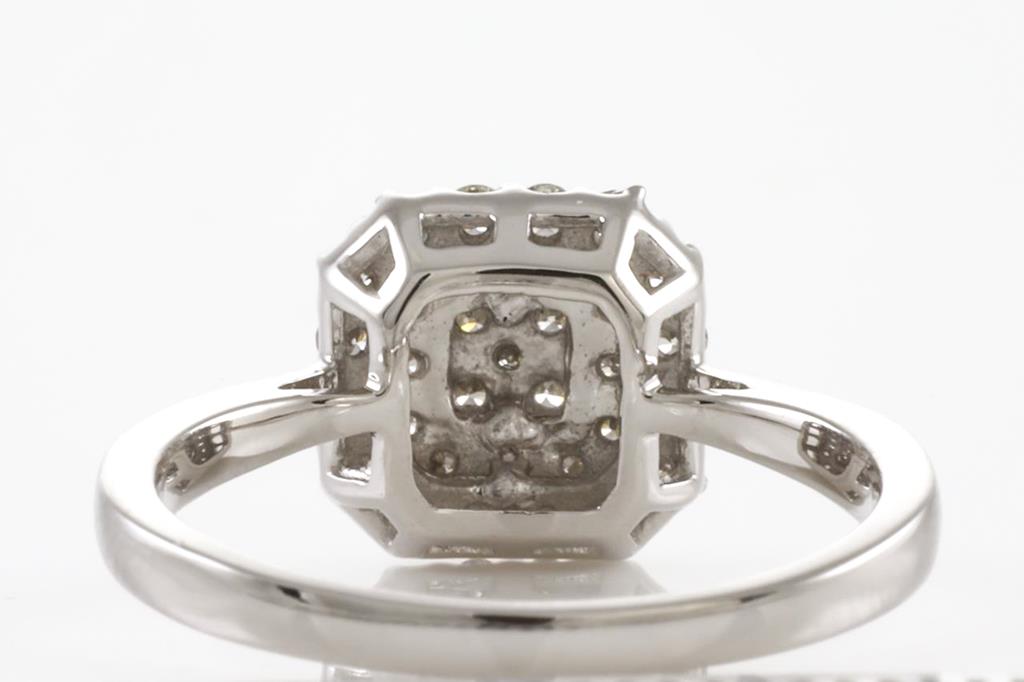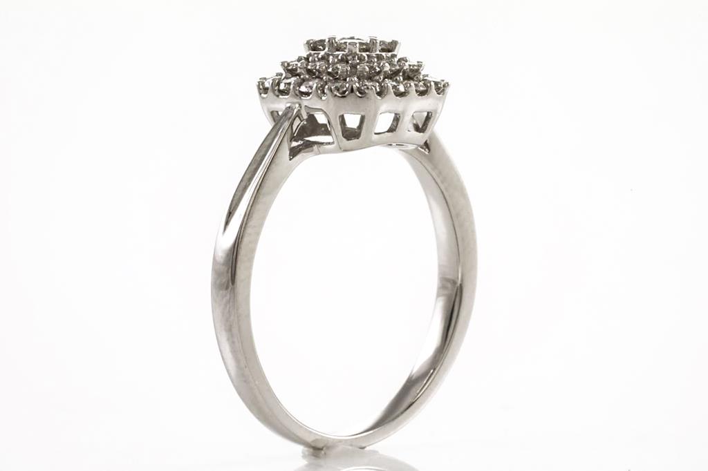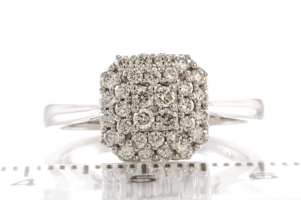 Diamond ring with round Diamonds totalling 0.50cts (Estimated grading: H SI). 14ct white gold. Ring size: M. Weight: 3.1g (New)