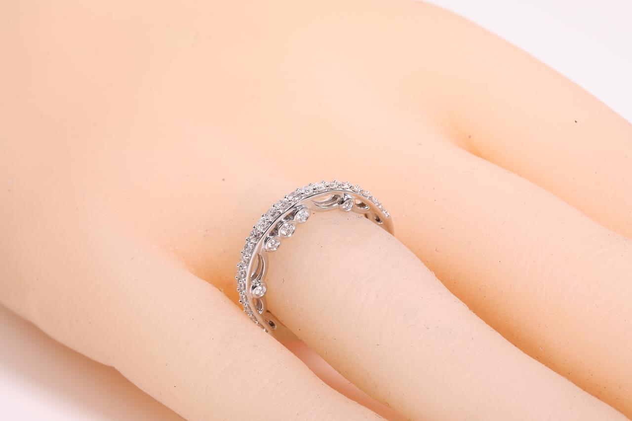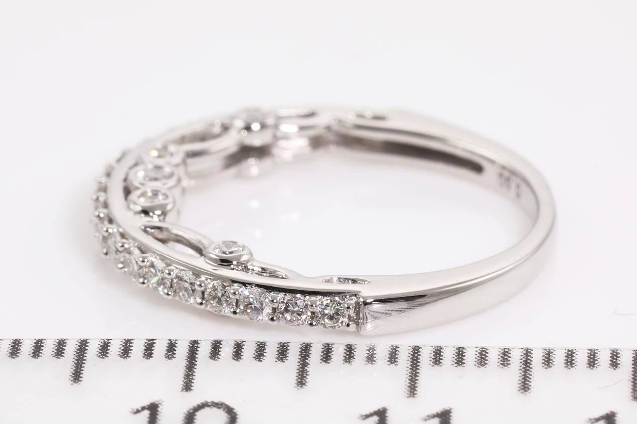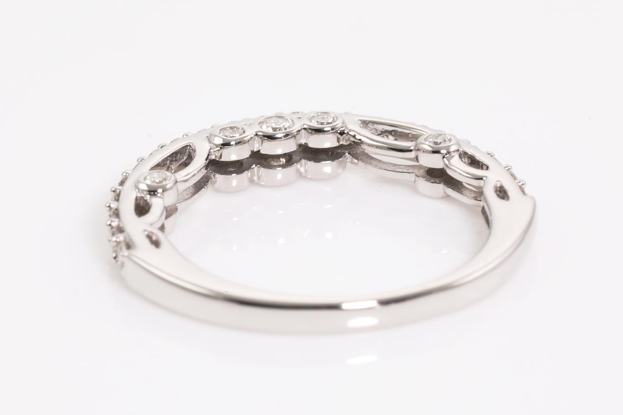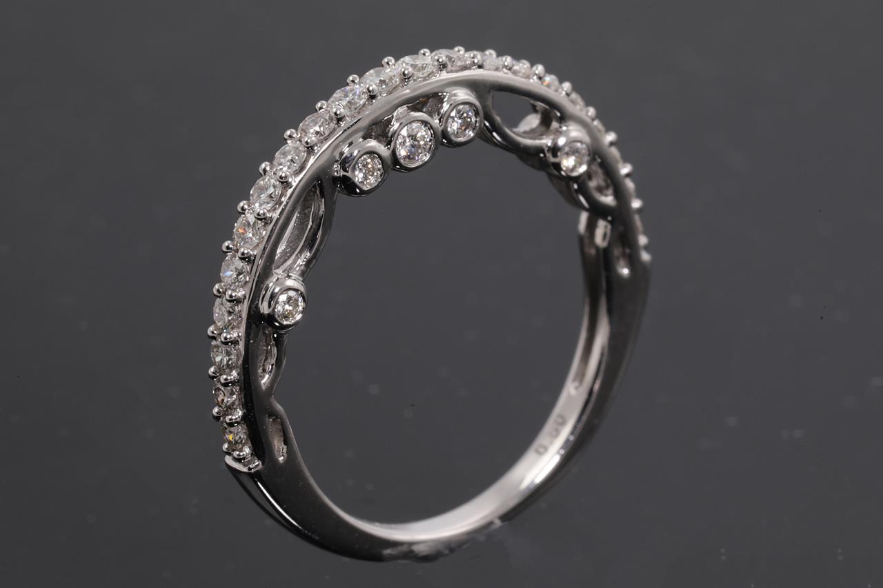 Diamond ring with round Diamonds totalling 0.50cts (Estimated grading: H SI). 14ct white gold. Ring size L - cannot be resized up, down with ring clip. Weight: 2.5g (New)