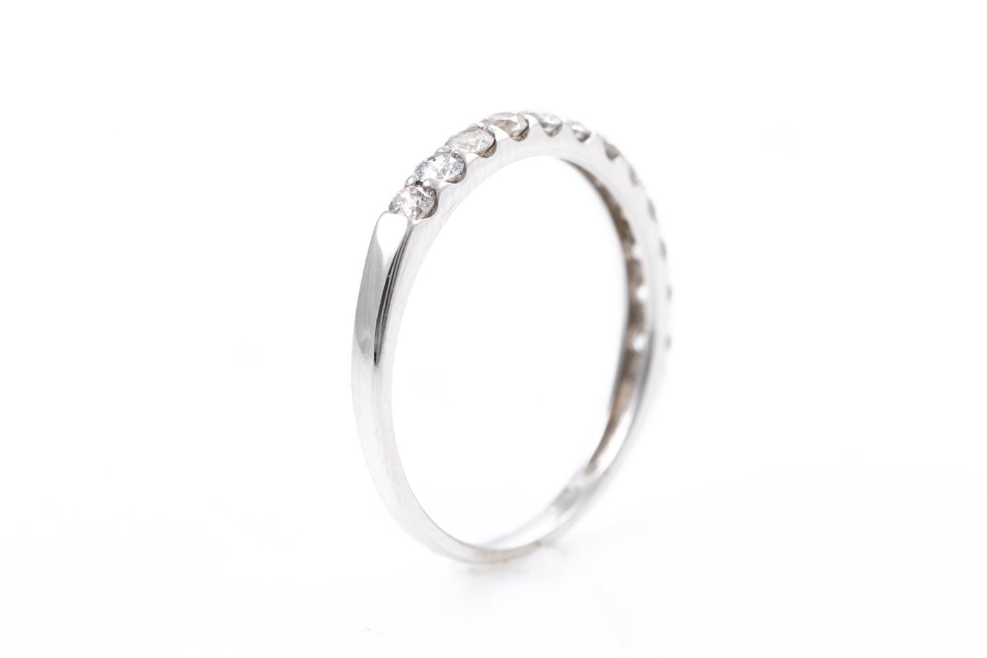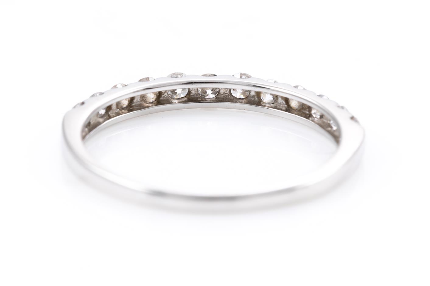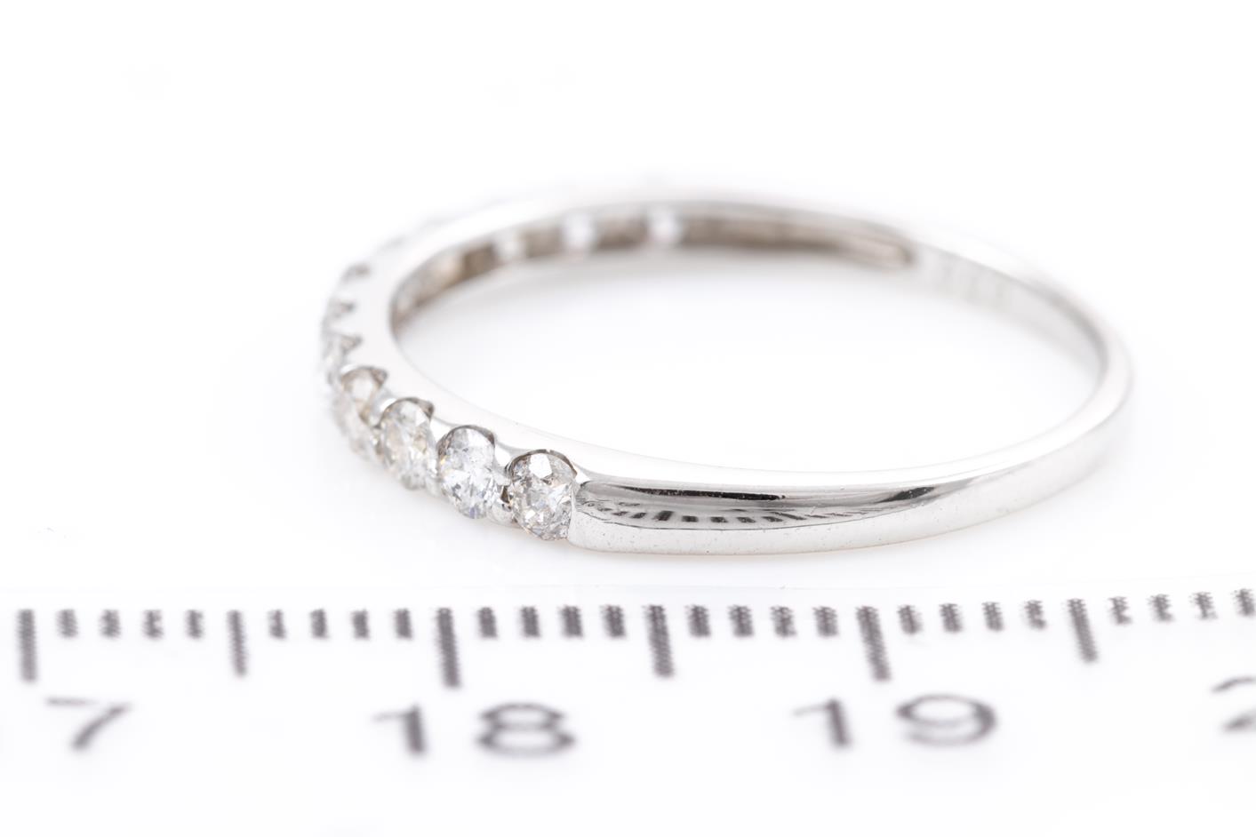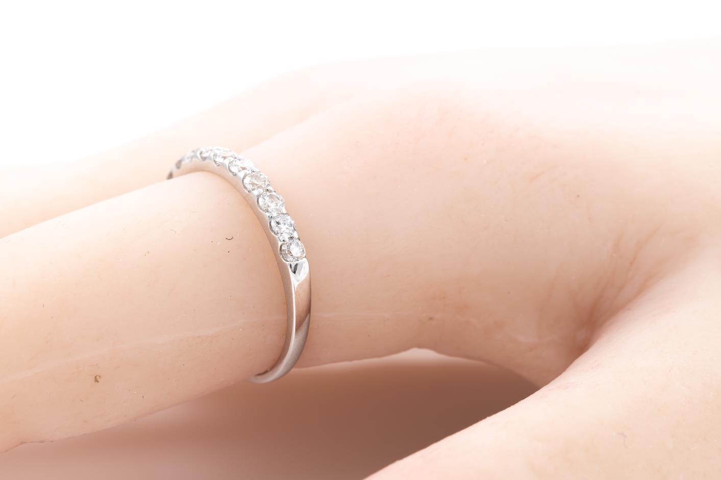 Diamond half hoop eternity ring with round Diamonds totalling 0.50cts (Estimated grading: I-J P1-2). Platinum. Ring size: N - can be resized up by a maximum of 3 sizes, down with ring clip. Weight: 2.2g (Pre-owned)