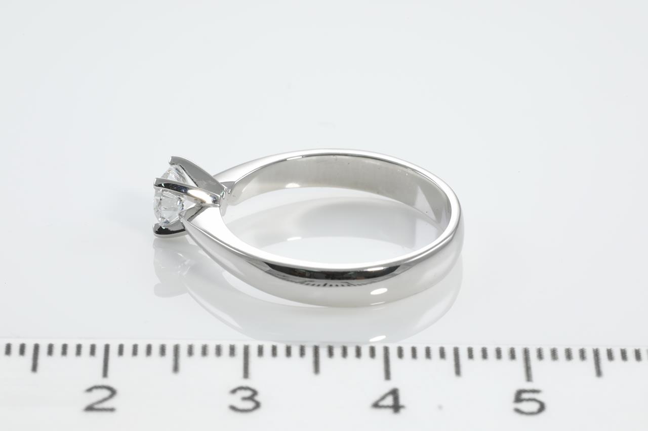 Diamond solitaire ring with round brilliant cut Diamond of 0.50ct (with GIA report graded D VS2 #6355111774). 18ct white gold. Ring size: M. Weight: 4.1g. (New)