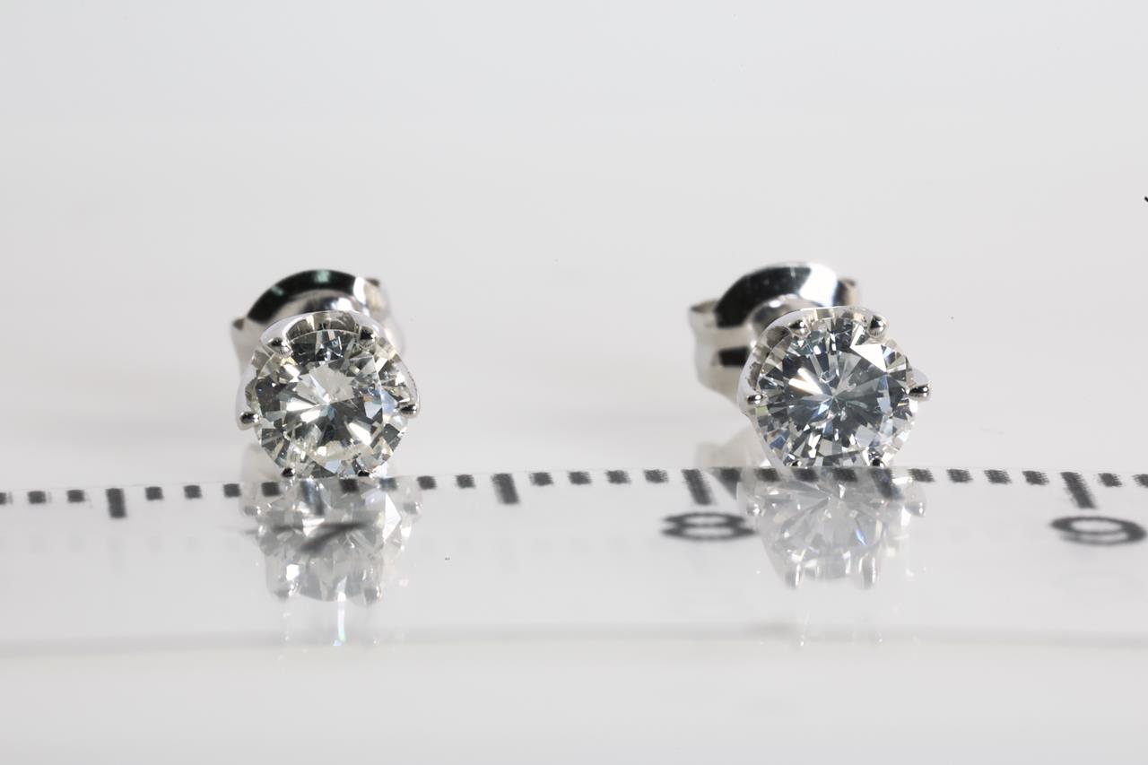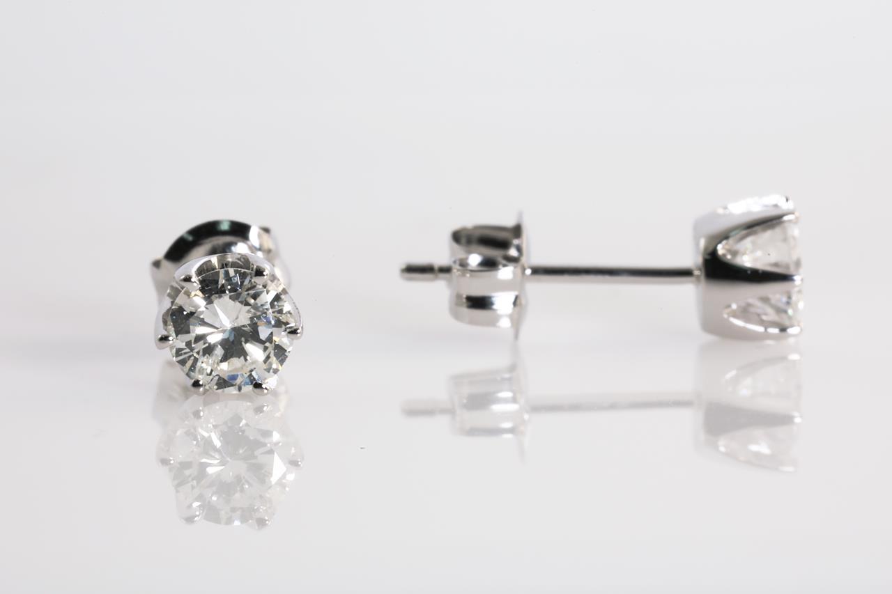 Diamond stud earrings with 2 round Diamonds totalling 0.50cts (Estimated grading: G SI). Platinum. Weight: 1.2g. (Pre-owned)