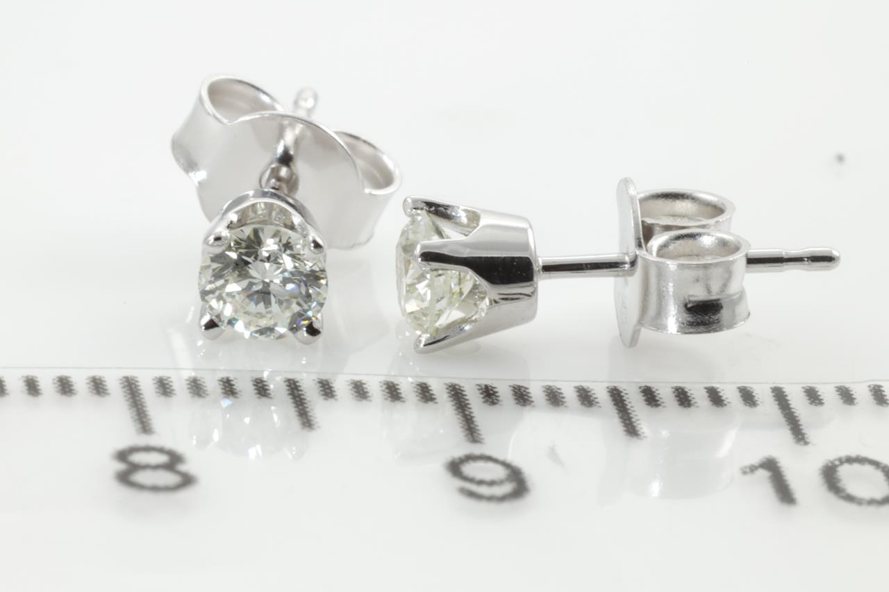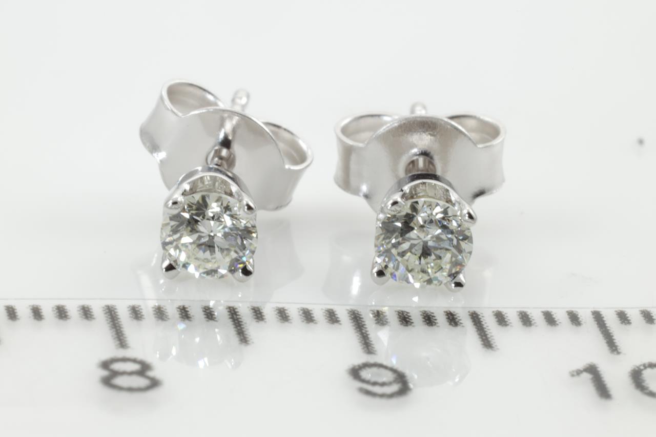 Diamond stud earrings with 2 round brilliant cut Diamonds totalling 0.50cts (Estimated grading: I SI). 18ct white gold. Weight: 1.2g. (New).