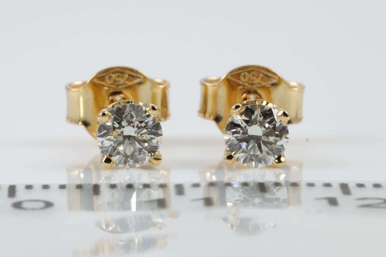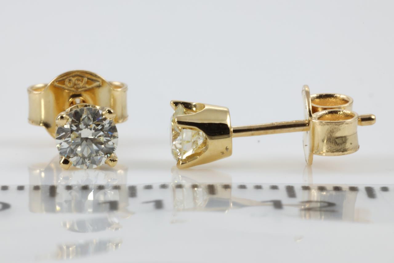 Diamond stud earrings with 2 round Diamonds totalling 0.50cts (Estimated grading: J VS-SI). 18ct yellow gold. Weight: 1.3g. (New).