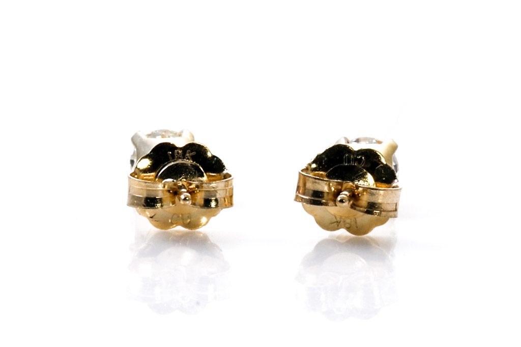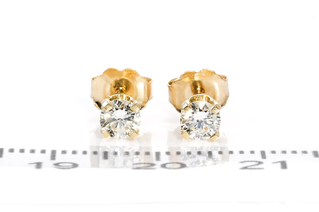 Diamond stud earrings with 2 round Diamonds totalling 0.50cts (Estimated grading: J SI). 18ct yellow gold. Weight: 1.1g. (New)