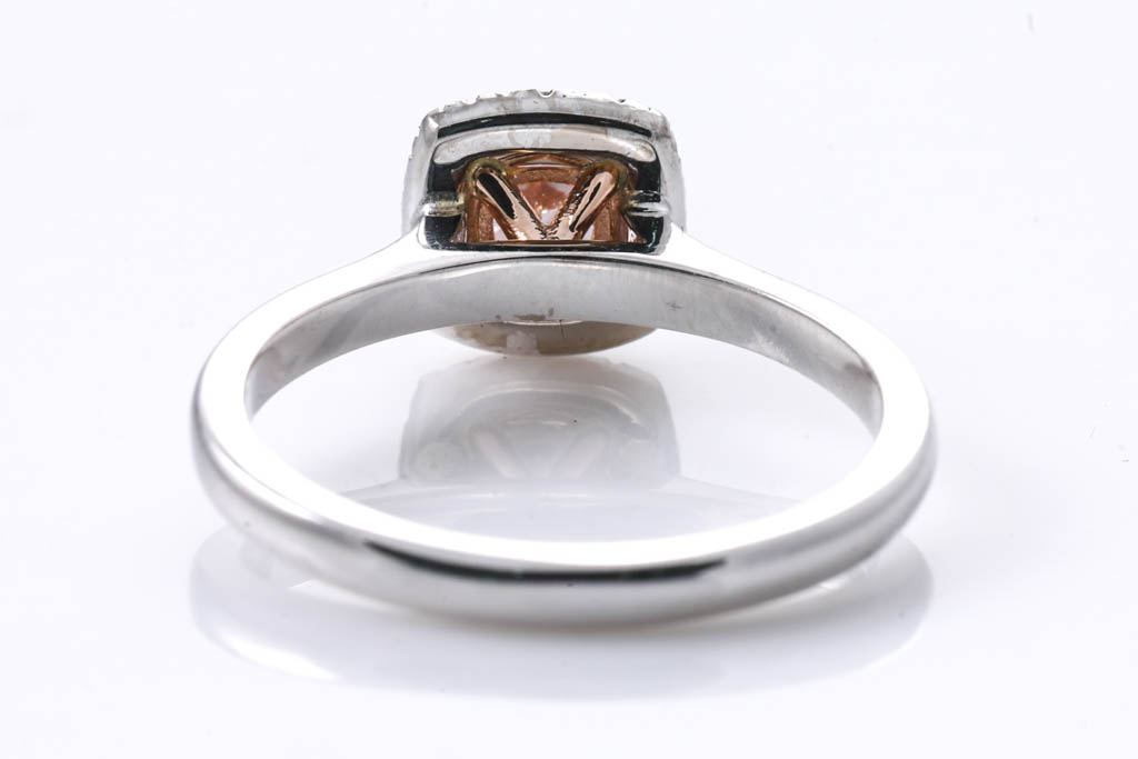 Diamond halo ring with centre cushion cut Diamond of 0.50ct (with GIA report graded as Natural Fancy Brown-Pink Even SI2 #2225133873)
