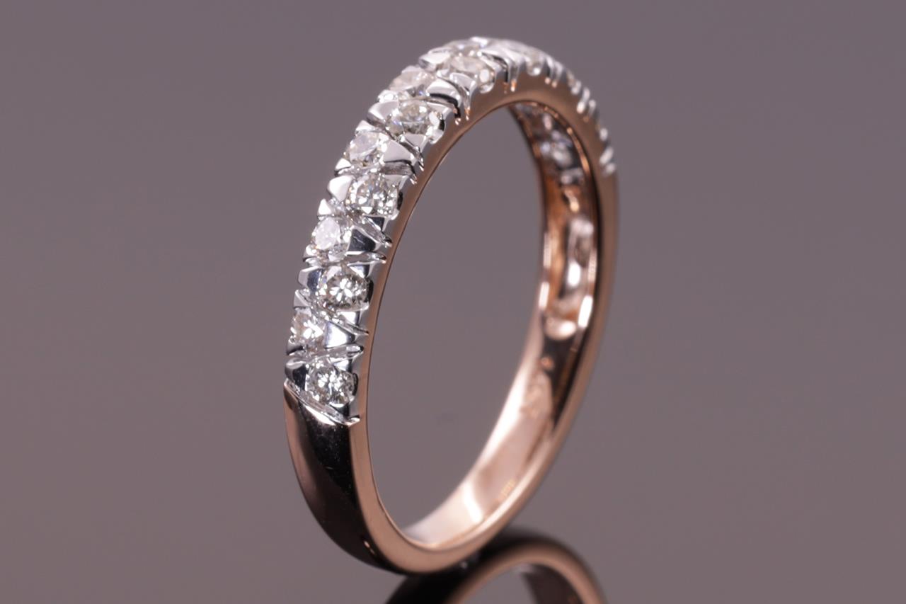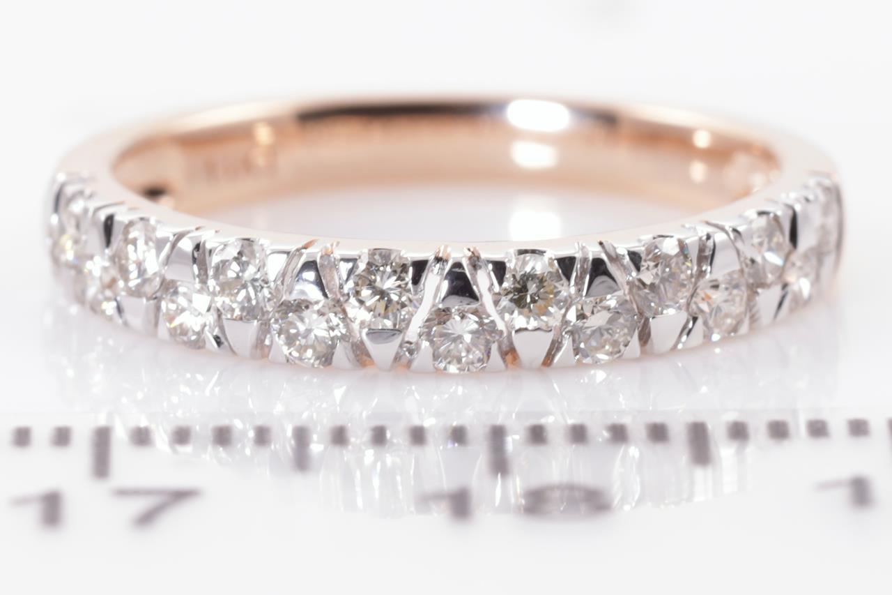 Half Hoop Diamond Eternity Ring with 16 round Diamonds totalling 0.50cts (Estimated grading: J-K SI). 14ct rose and white gold. Size: N. Weight: 2.4g. (New)