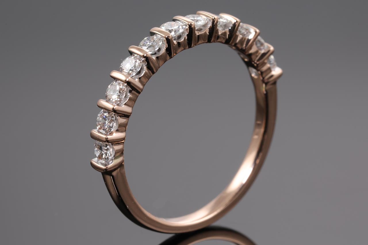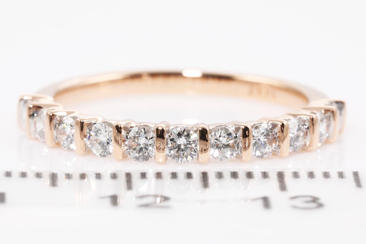 Half Hoop Diamond Eternity Ring with 11 round Diamonds totalling 0.50cts (Estimated grading: H SI). 14ct rose gold. Size: N - can be resized up by a maximum of 3 sizes, down with ring clip. Weight: 2.2g. (New)