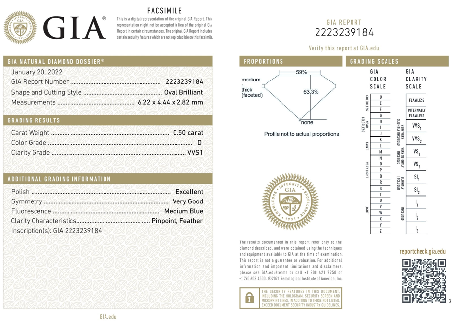 A loose oval shape Diamond of 0.50ct (with GIA summary report graded as D VVS1#2223239184). (New)