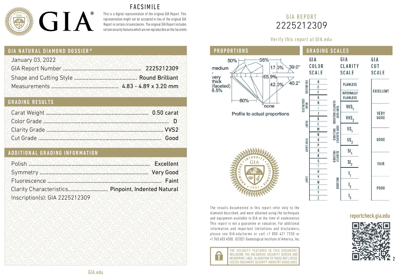A loose round brilliant cut Diamond of 0.50ct (With GIA summary report graded as D VVS2 #2225212309
