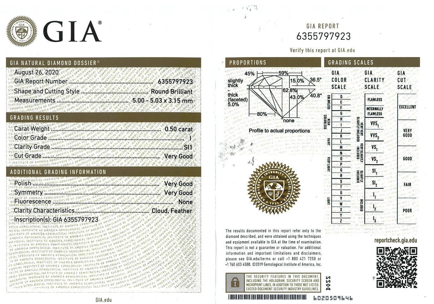 A loose round brilliant cut Diamond of 0.50ct (with GIA report graded as I SI1 #6355797923). (New)