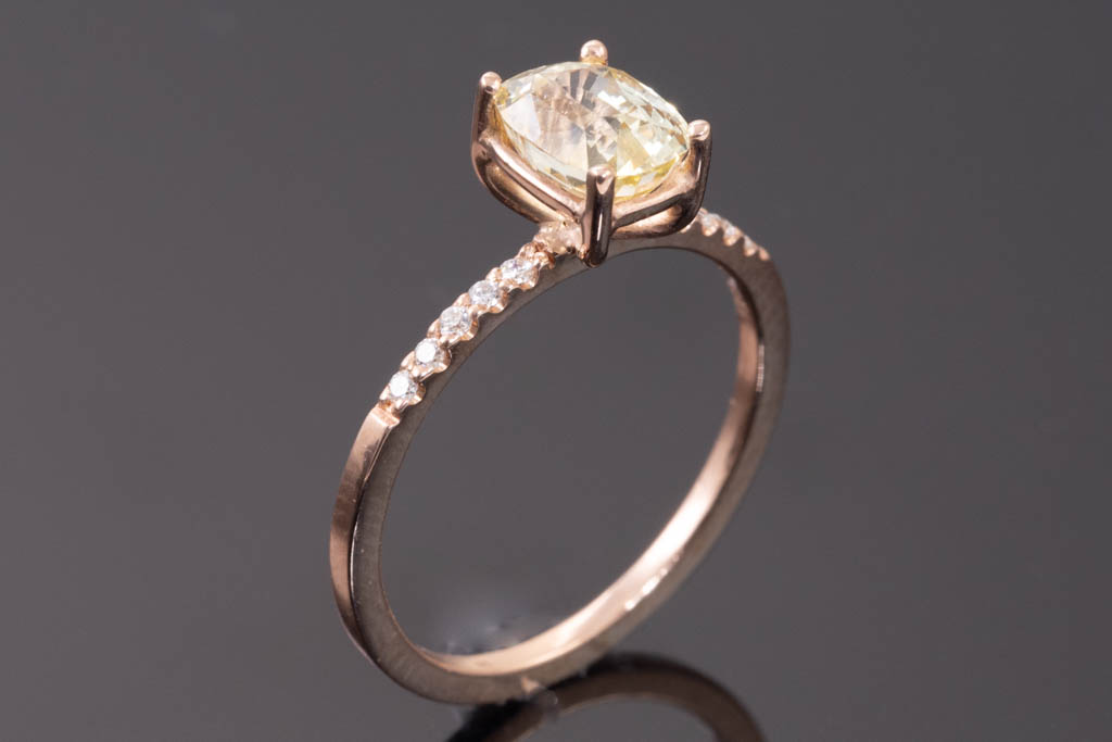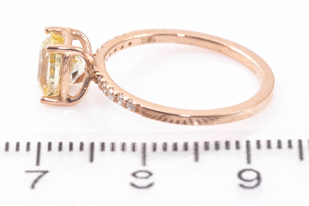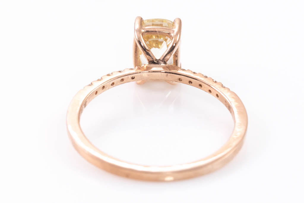 Sapphire ring with an oval unheated Ceylon yellow Sapphire of 0.50ct and diamonds totalling 0.05cts. 18ct rose gold. Ring size I 3/4. Weight 1.8g. With GGTL Certificate #157711 (As New)