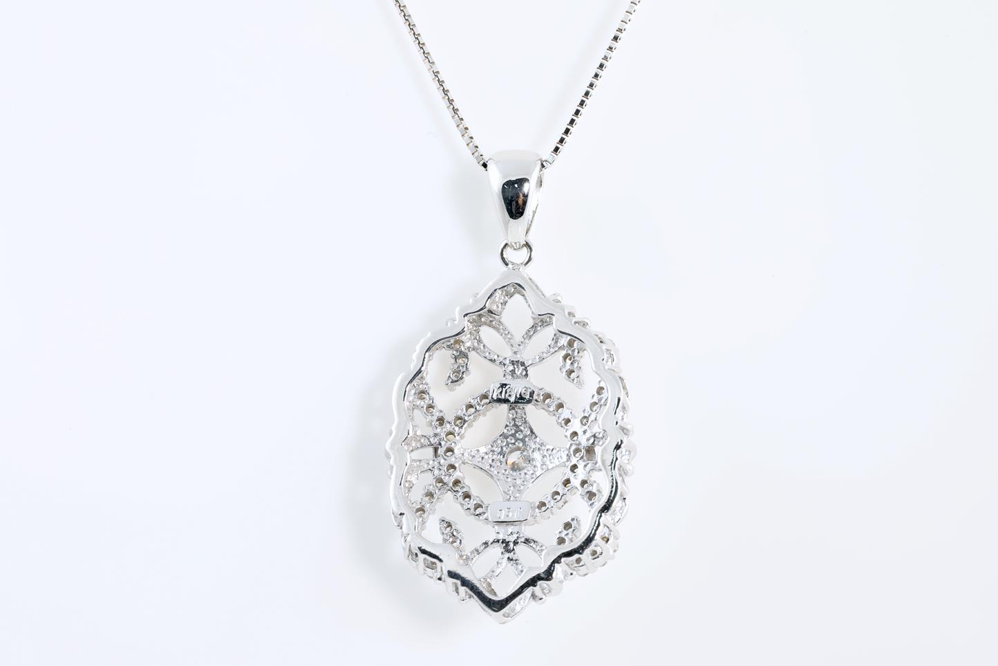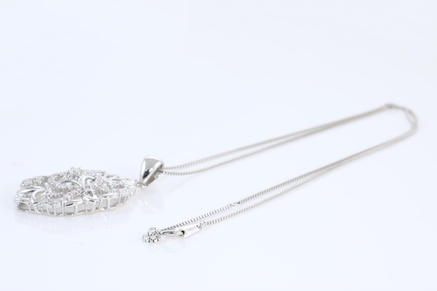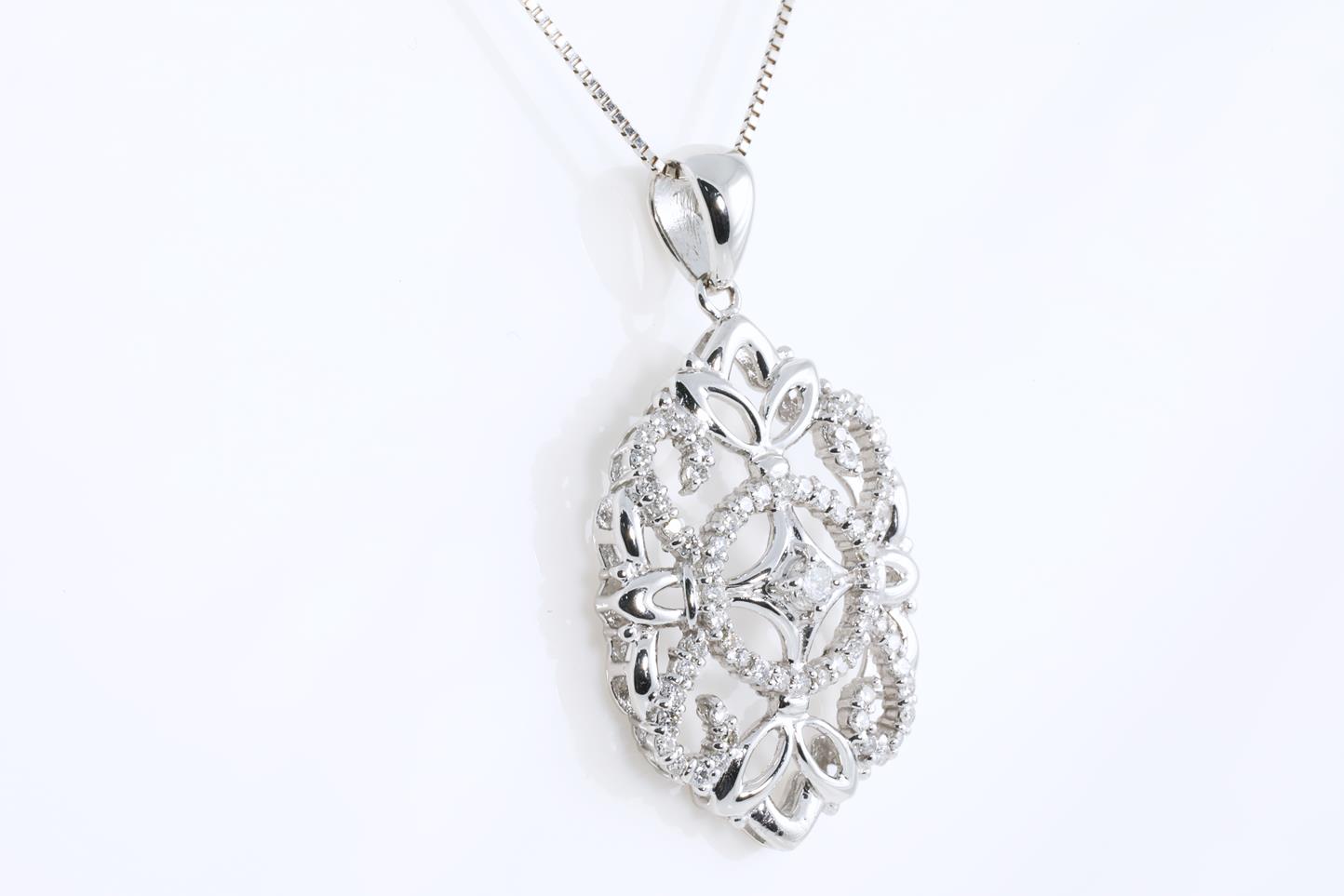 Diamond pendant with Diamonds totalling 0.51ct (Estimated grading: G-H SI-P1). 18ct white gold. With 40cm 18ct white gold chain. Weight: 6.3g (Pre-owned)