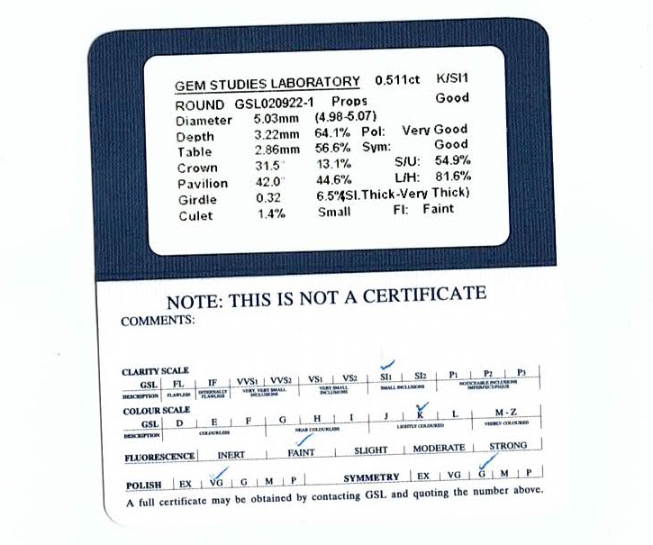 0.51ct Loose Diamond GSL K SI1